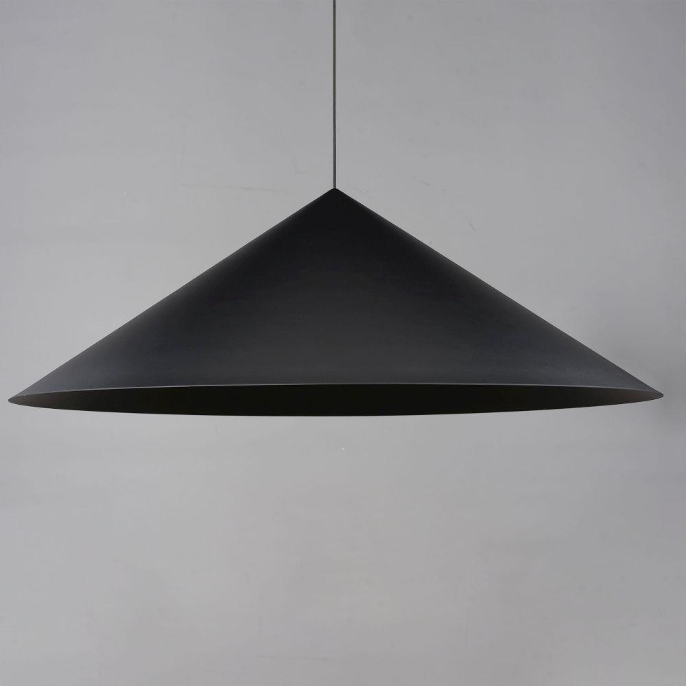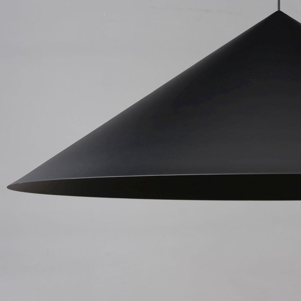 Sleek and simply, the effortlessly chic oversized cone pendants add a modern touch to elevate your space. A surprisingly bright single light source is recessed within a secondary smaller aperture cone shade painted white on its interior to reflect more and beam additional lighting downward without glare. This distinctive cut off accentuates the black finish on the surfaces between two cones. Available in Black and Antique Brass, this pendant series exemplifies the enduring elegance of the cone form in design.