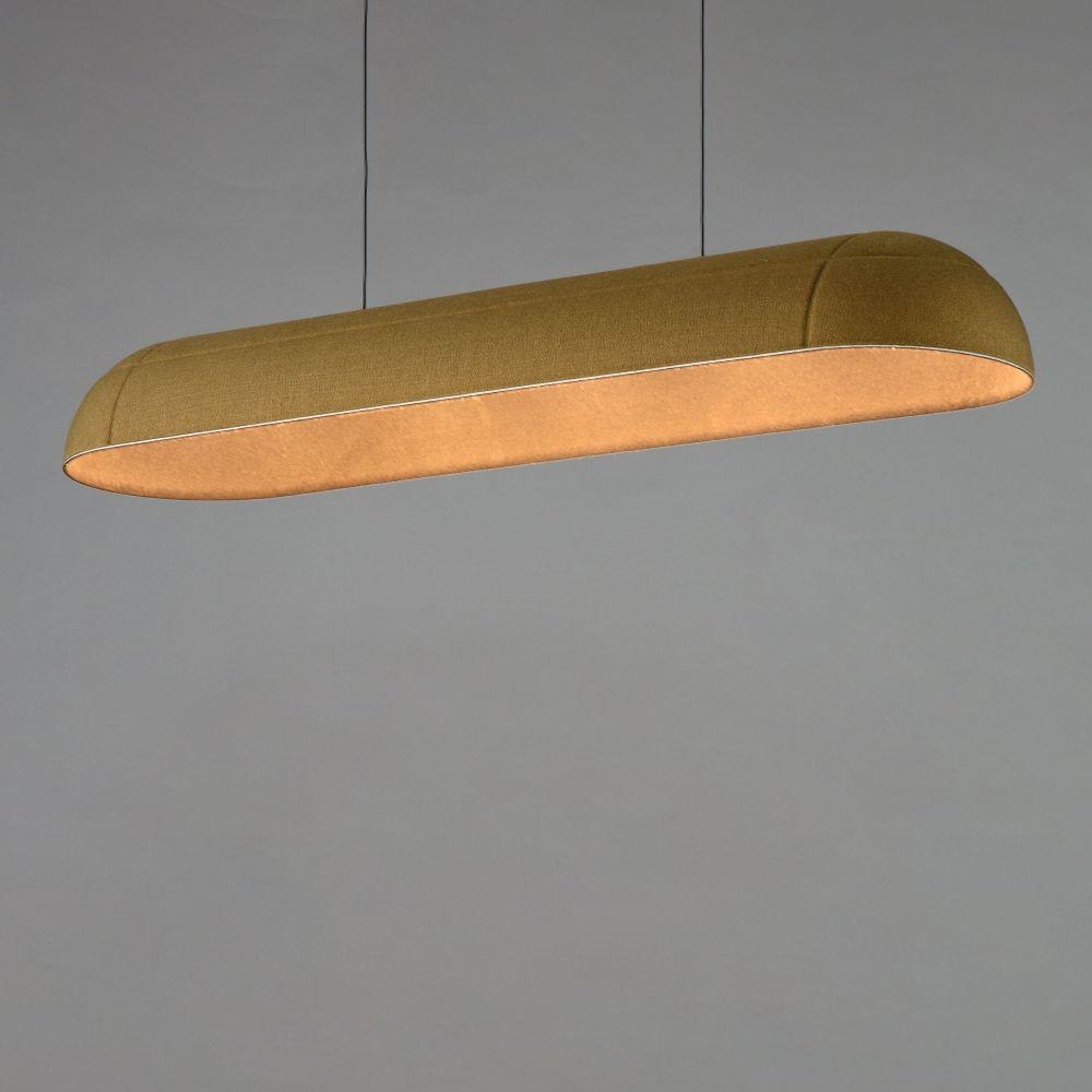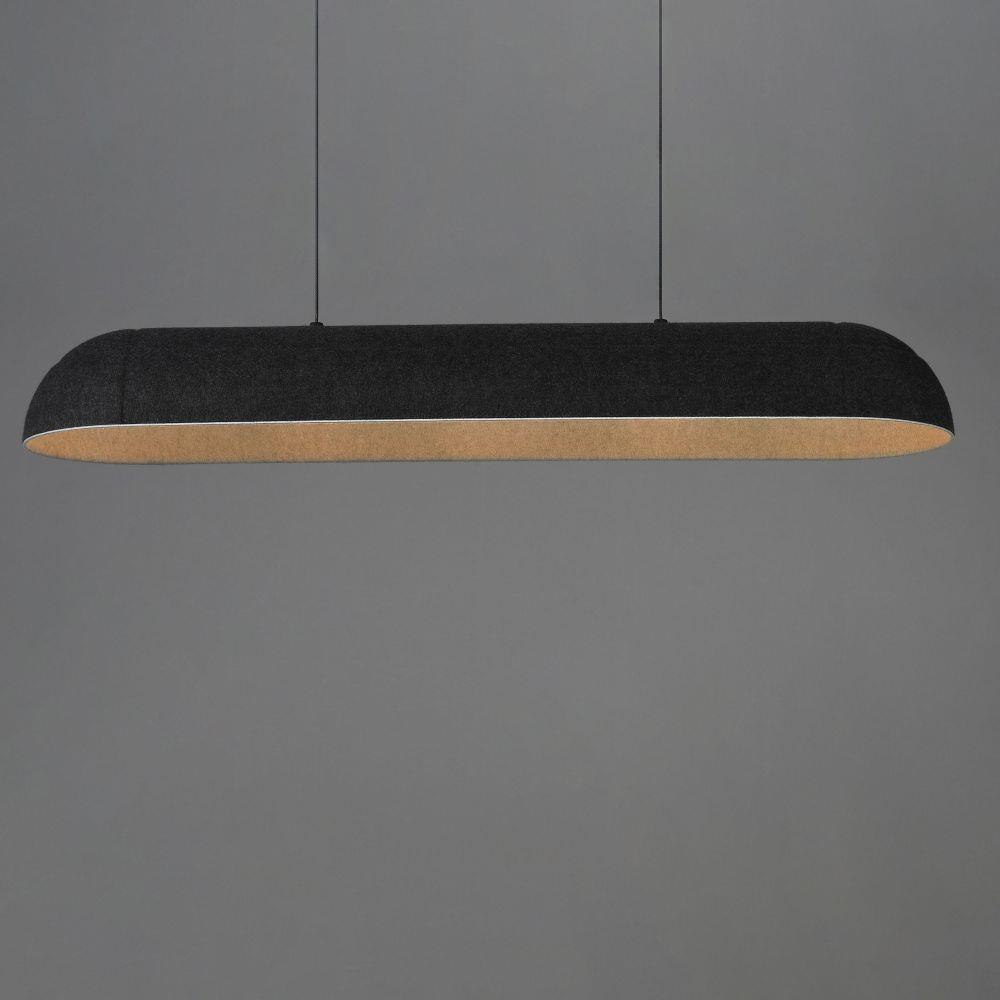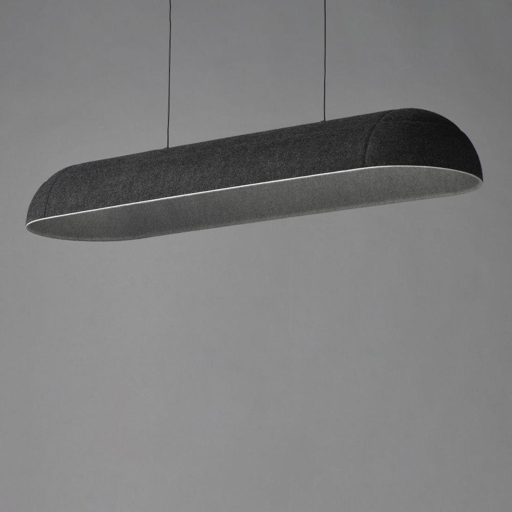 Balancing work and play, the Wimbeldon collection is a fun collection of lighting fixtures that utilizes dual-layered sound dampening felt shades that enhance the acoustics of a space. The deep ridged pattern gracefully intersects elevating the simple forms. Choose from linear or half dome configurations in various colors: Dark Grey and Light Cream felts offer more neutral tones while the Olive exterior with Black felt interior presents a more colorful option. Housed within the shades are high powered LED modules that provide ample functional down lighting.