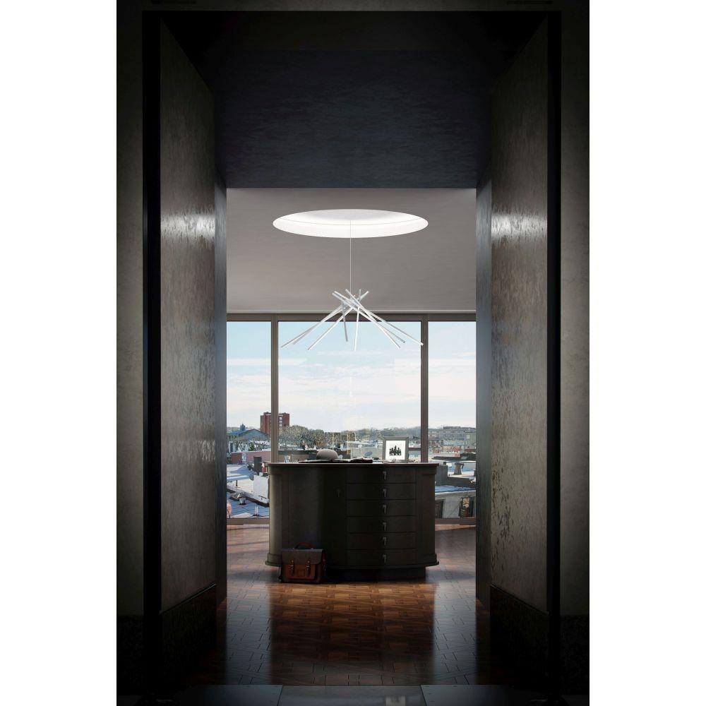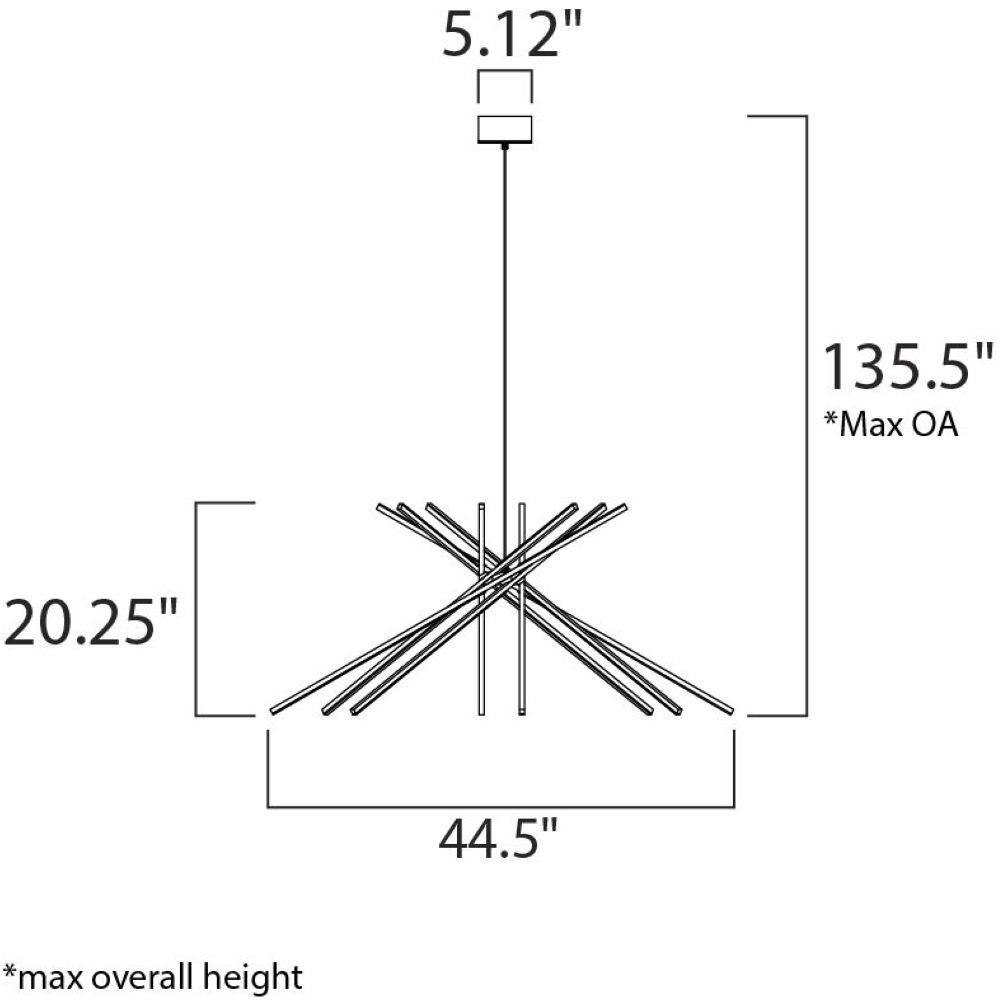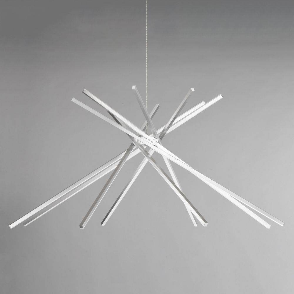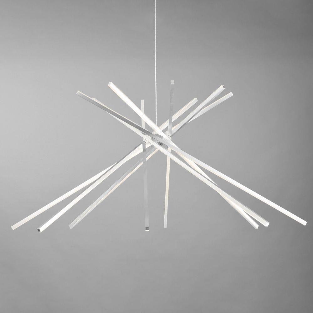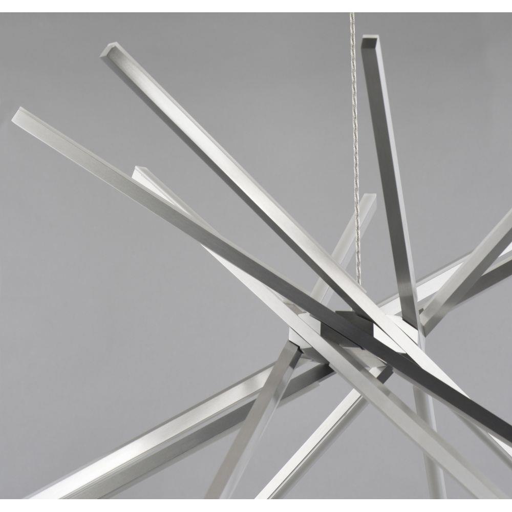 The Alumilux Aster-480W Pendant, model E41446-SA, is a stunning contemporary lighting fixture that combines style and functionality. Measuring 44.5 inches wide by 20.25 inches high, this pendant features eight hidden LED bulbs, offering a sleek Sputnik design. Crafted from durable acrylic and aluminum, it ensures both longevity and elegance. Perfect for modern spaces, the Alumilux Aster collection elevates your interior with its innovative design and efficient lighting, creating a warm and inviting atmosphere.