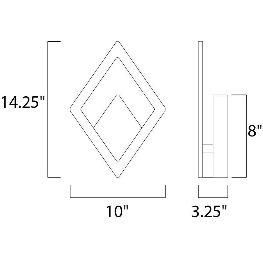 Introducing the Alumilux Rhombus Outdoor Wall Light, model E41493-BZ. This striking fixture stands 14.25 inches tall and spans 10 inches wide, making it a perfect addition to any outdoor space. Crafted from durable aluminum, it features a single LED bulb, ensuring efficient lighting while enhancing your exterior decor. The contemporary design of the Alumilux Rhombus collection combines functionality with style, illuminating your surroundings with elegance.