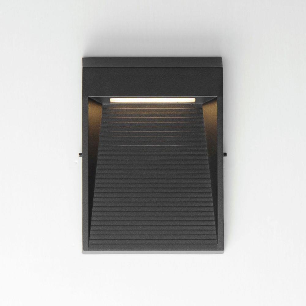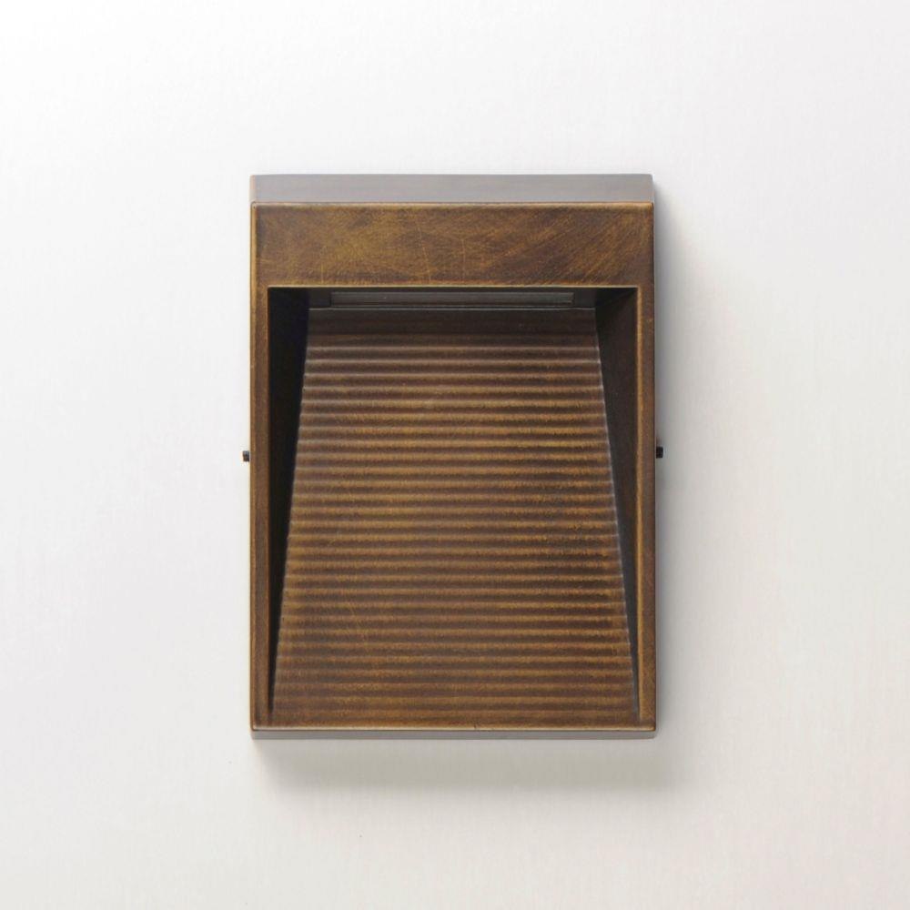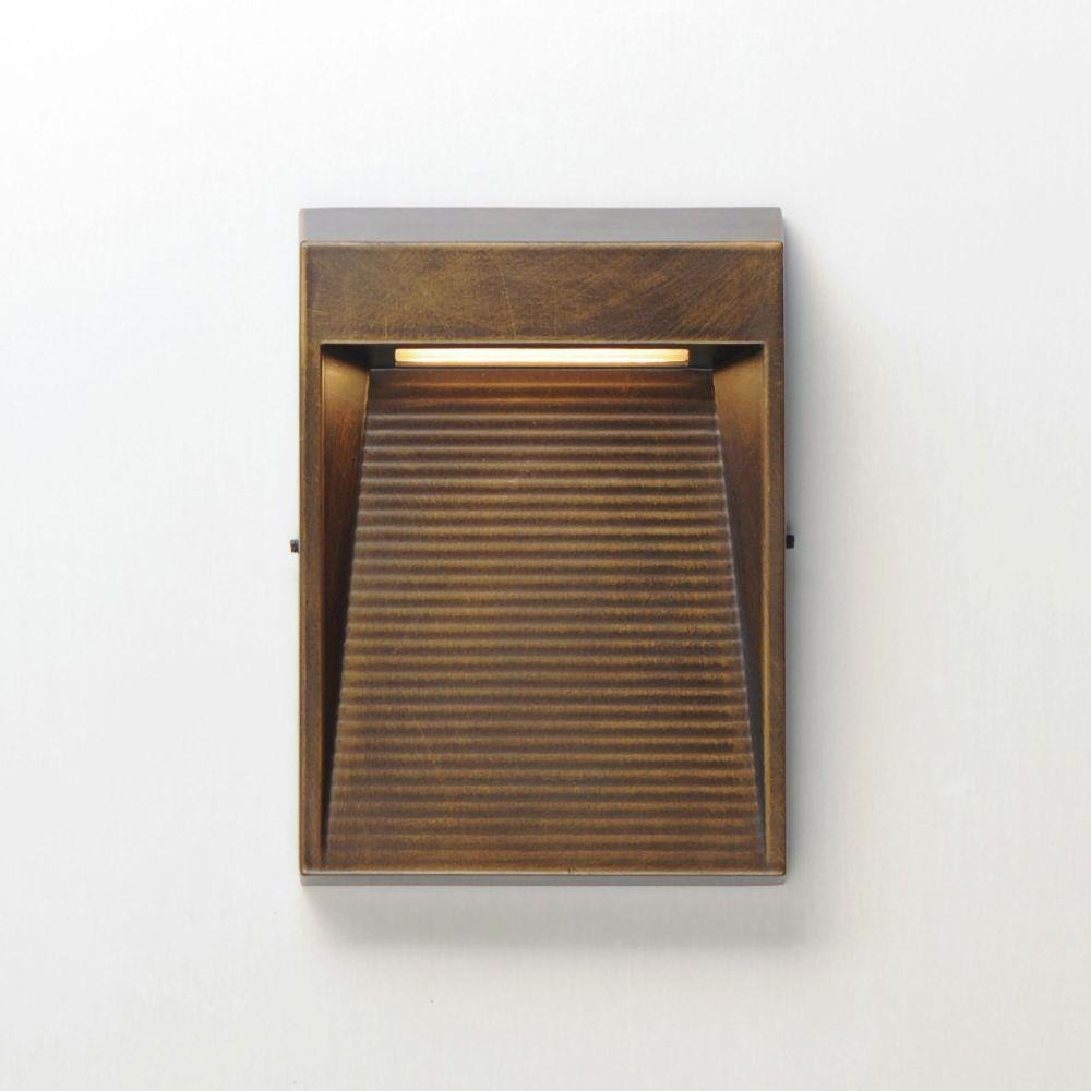 A slim profile extends from the wall with sharply angled facets. Available in various sizes and your choice of Matte Black or Antique Bronze finish, its scale allows it to function both as a step light and as a subtle LED outdoor wall sconce. Concealed within the top housing is an integrated LED light that casts light downward on a series of ridges capturing various intensities of light.