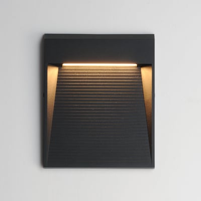 The Steppes LED Outdoor Sconce enhances outdoor spaces with its modern, linear design inspired by city skylines. Crafted with precision, this sconce features beveled clear glass that reflects light beautifully, creating a captivating ambiance.