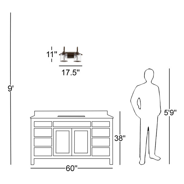 This 2-light vanity fixture brings an antique-inspired feel and plenty of illumination to your bathroom or powder room. Crafted from steel, it comes in a heavily distressed wood-look finish for a modern farmhouse vibe we love. It includes a distinctive backplate and a horizontal bar that connects to two holders with decorative scrollwork up top. Surrounding each of the 100W max bulbs (sold separately) is a drum shade made from clear seeded glass to diffuse the light's soft, ambient glow. This vanity light is also rated for damp locations, so it's safe to install and use in high-moisture environments.