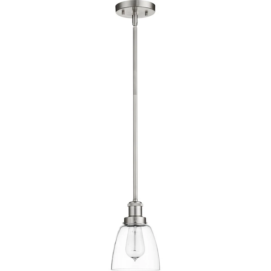 Quorum 6" Clear Bell Pendant, Satin Nickel - 878-165