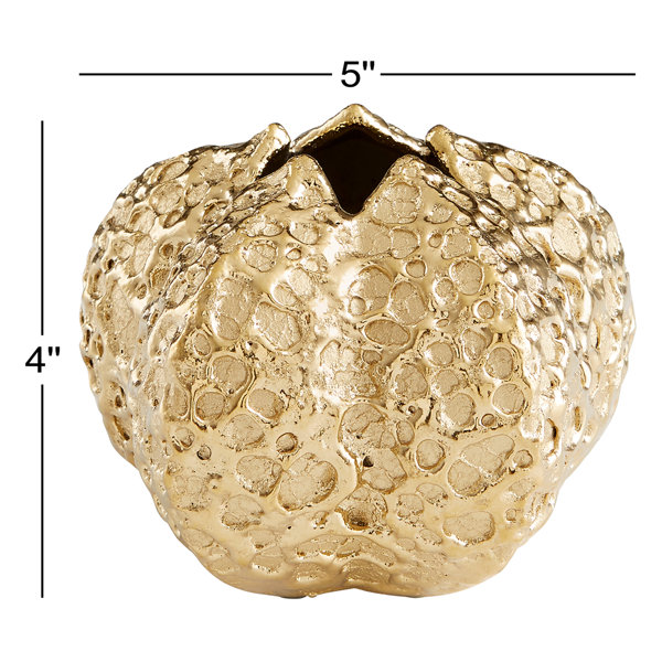 This abstract accent vase features a hammered metal form, coated in a shimmering gold finish. Perfect for any tabletop ensemble with ambitious elegance as the foundation for style and design. Store your floral arrangements in this vessel to display in your home office, bathroom, living room, or bedroom. This vase is also great for commercial or hospitality applications for added luxury in common areas and lobbies.