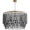 The Estrella III Pendant is a wonderfully smaller pendant light perfect for smaller formal spaces. Its circular gilded frame contains shorter dark monochrome beads which make up its impermanent body.