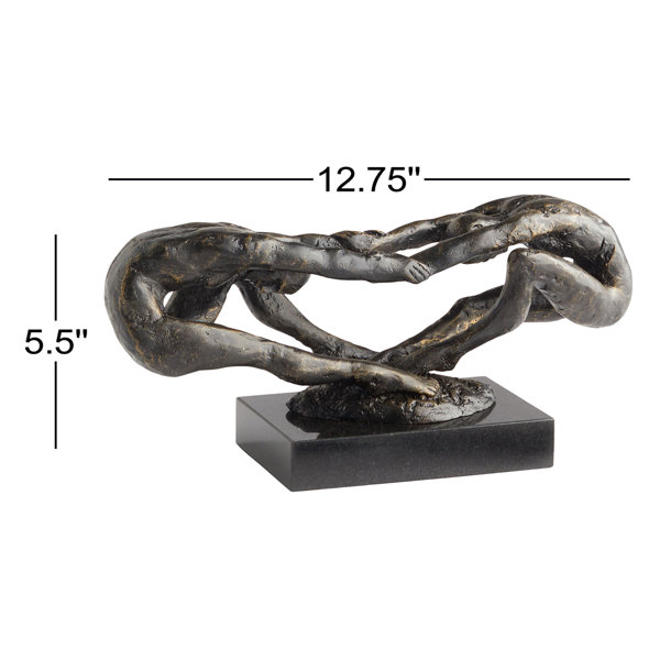 In the spirit of never giving up, the Adherence sculpture is an inventive rendering of two human figures counterbalancing their weight while firmly gripping each other. The pair is sand cast from iron with an old-world finish and fixed to a granite base. Place alone on an accent table or upon a bookcase shelf to add an artistic touch.