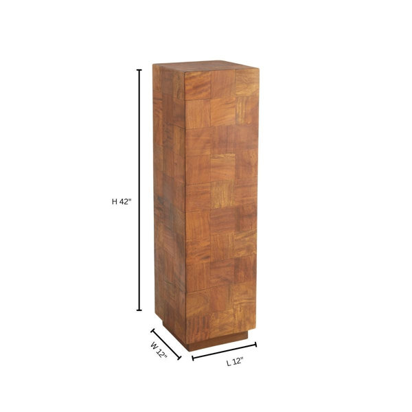 Hand-applied, alternating grain parquet blocks of natural Sheesham wood give the Halma pedestals a fascinating checker-like pattern. Mitered edges are precisely measured and cut by hand from vintage reclaimed Sheesham wood, creating seamless lines throughout. Enhance the energy of a lobby or entryway by displaying the Halma pedestals.