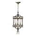 This Three Light Framed Glass Foyer Hall Fixture is part of the Buckingham Collection and has a St. Regis Bronze Finish and Water Glass. It is Dry Rated. Finish: St. Regis Bronze Style: Traditional Type of Bulb: Candelabra Number of Bulbs: 3 Wattage: 60