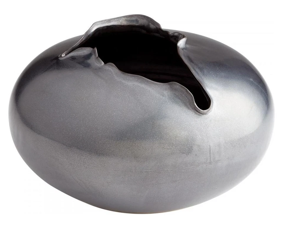 Black Metal Tambora 8 Inch Tall Ceramic Vase