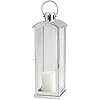 Accentuate contemporary decor with the classic appeal of this updated large lantern candleholder. Boasting a tall silhouette and glass walls, the lantern is framed with a nickel finish that gleams on a side or console table.