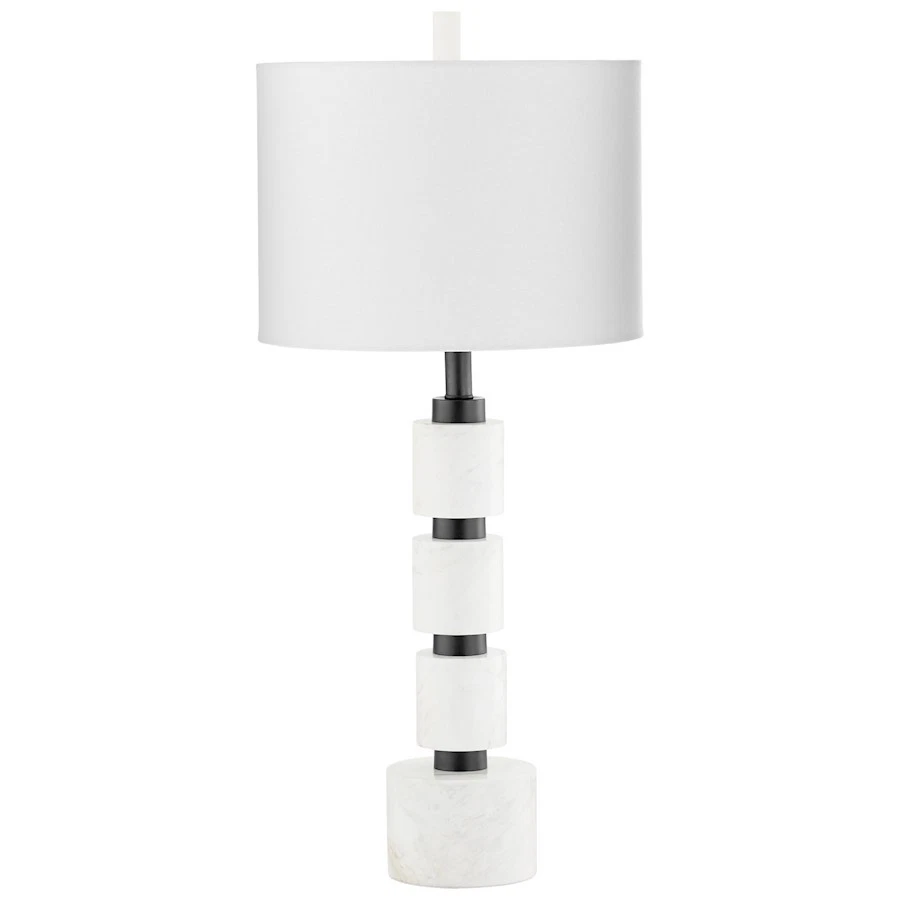 - Iron and Marble with Off White Linen Shade