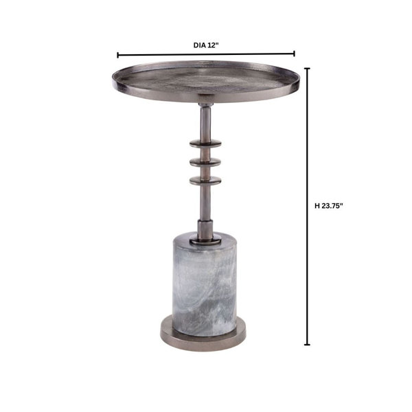 The Jetson table's rustic blackened nickel top and stem provide a striking contrast to a smooth, polished marble base. The table's rough-cast tray top exudes a sense of tactile charm, invoking a handcrafted feel that's both inviting and unique. Its heavy Kayampura marble base not only provides stability but also enriches the table's overall aesthetic appeal.