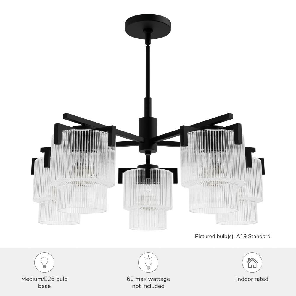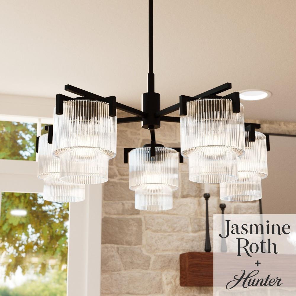 Illuminate your space with the timeless brilliance of the Ontario 5 Light Chandelier from the Jasmine Roth Collection. This stunning chandelier embodies a Formal Transitional style, blending classic elegance with a touch of glam. The chandelier features trending ribbed glass uniquely molded in one piece, creating a seamless and sophisticated look. Perfect for adding a statement to dining rooms, foyers, or living spaces, the Ontario 5 Light Chandelier brings timeless beauty and modern design together, making it an ideal centerpiece for any room in need of a touch of luxury.