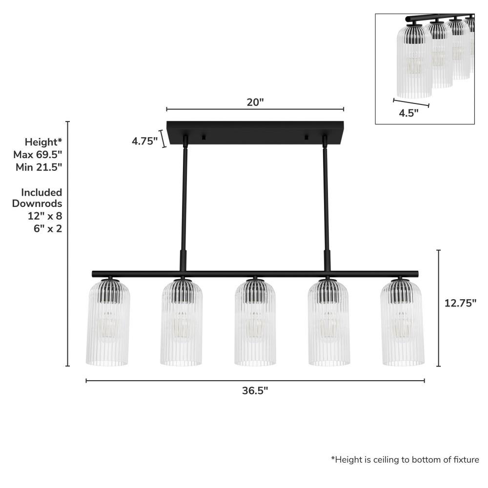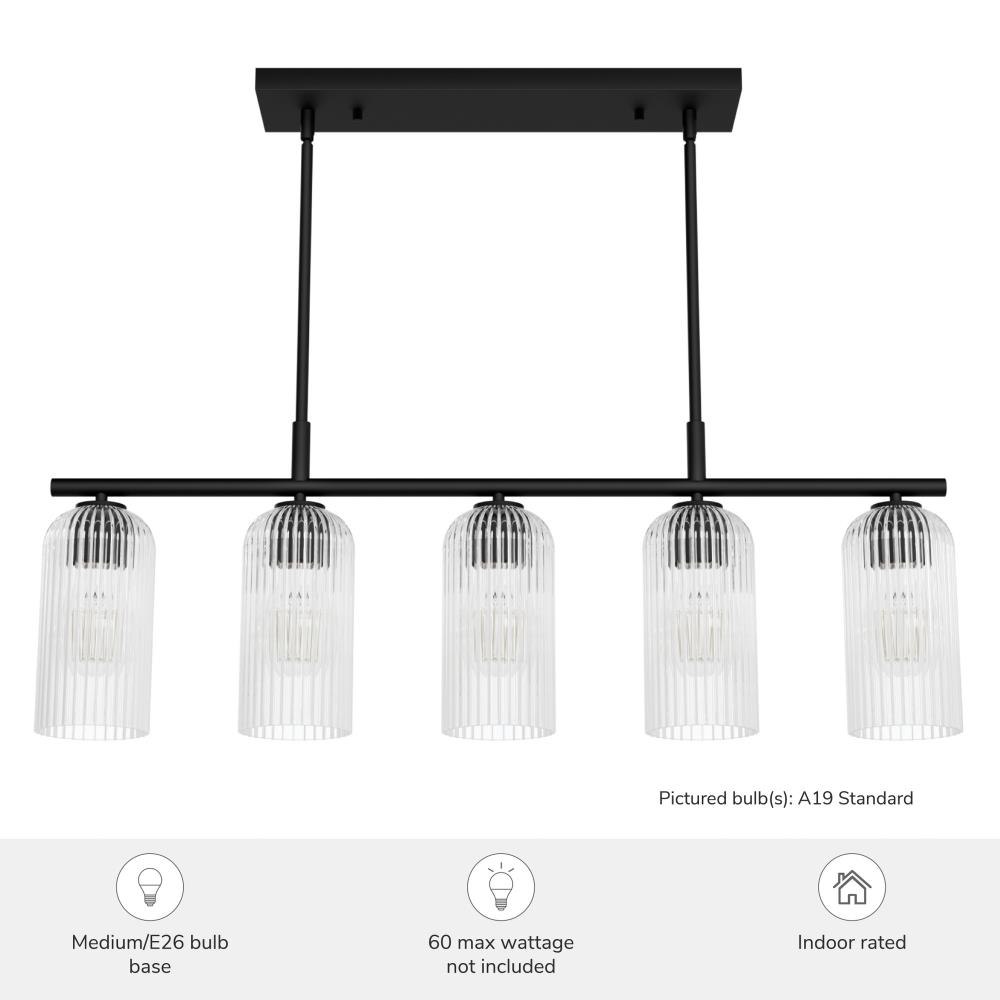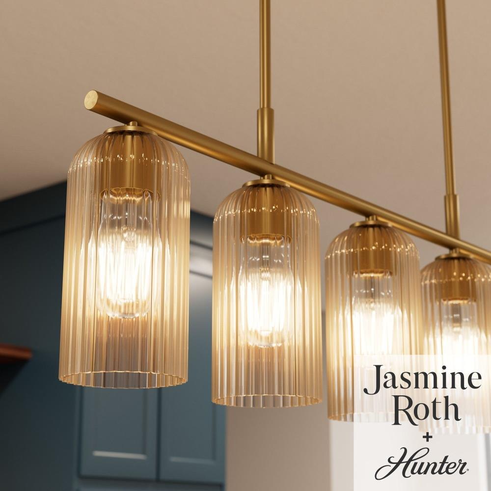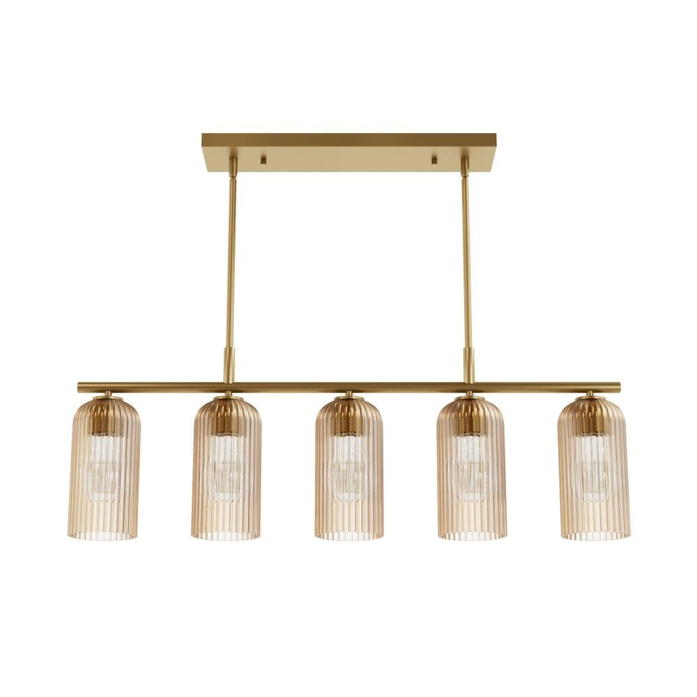 Brighten your culinary space with the stunning Beverly Glen 5 Linear Kitchen Island Chandelier from the Jasmine Roth Collection. Available in Luxe Gold or Matte Black finishes with amber or clear glass, this chandelier combines style and functionality. Its transitional design effortlessly merges classic elegance with modern sophistication, making it the perfect centerpiece for your kitchen island. Rated for indoor use, the Beverly Glen Chandelier casts a warm, inviting glow, transforming your kitchen into a chic and stylish space. Illuminate your culinary haven with this stunning and versatile fixture.