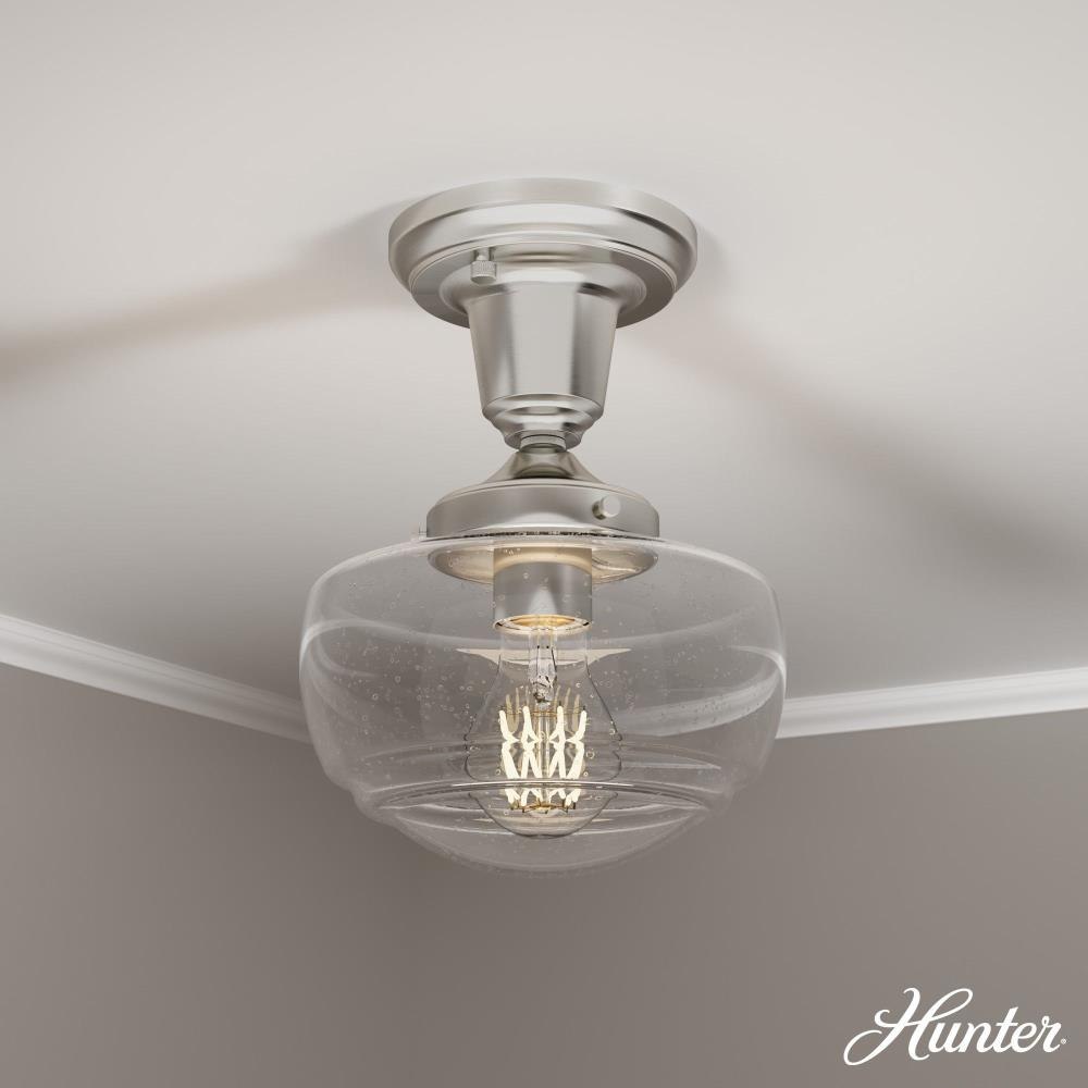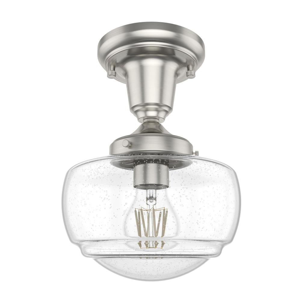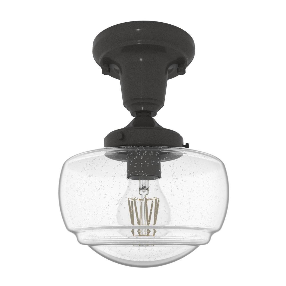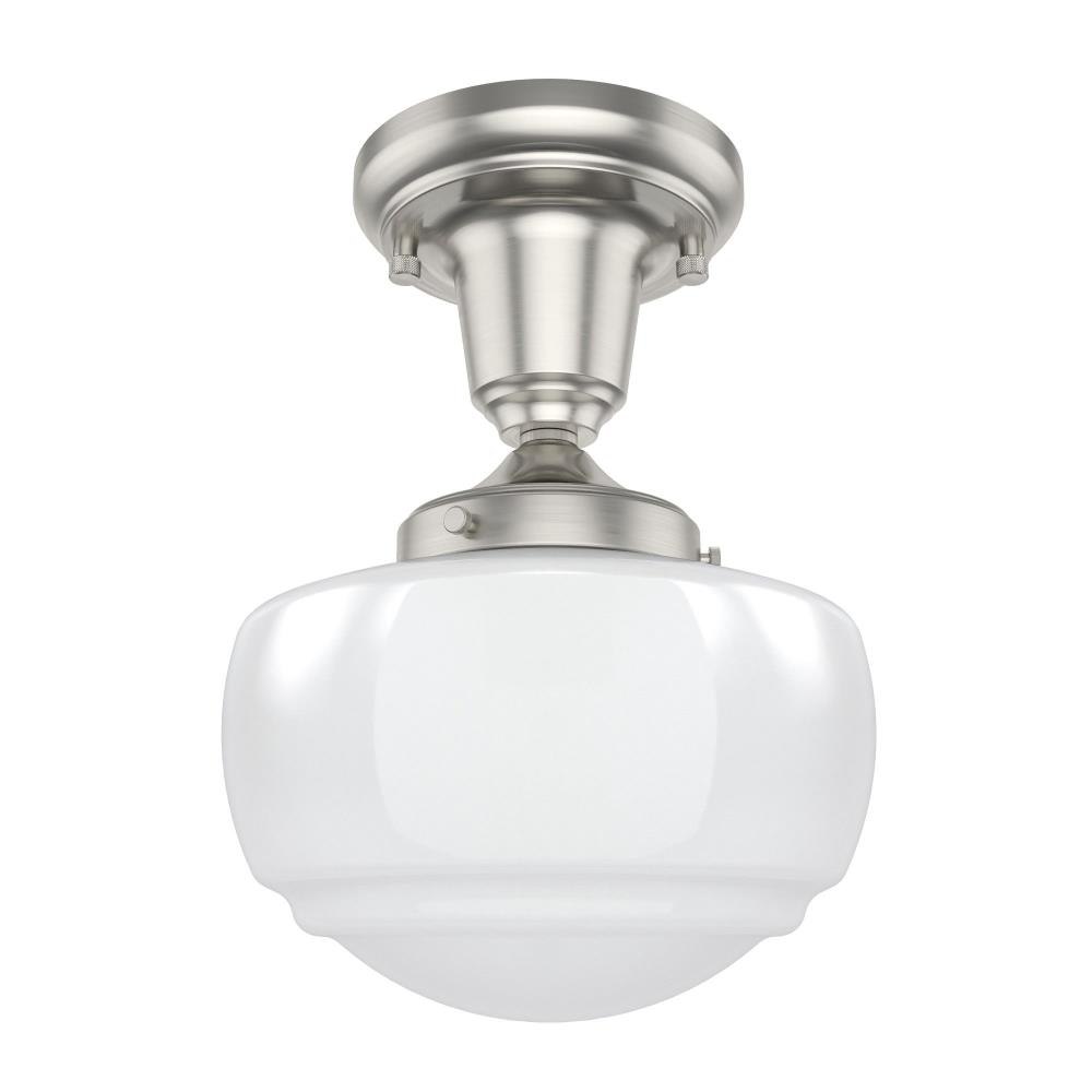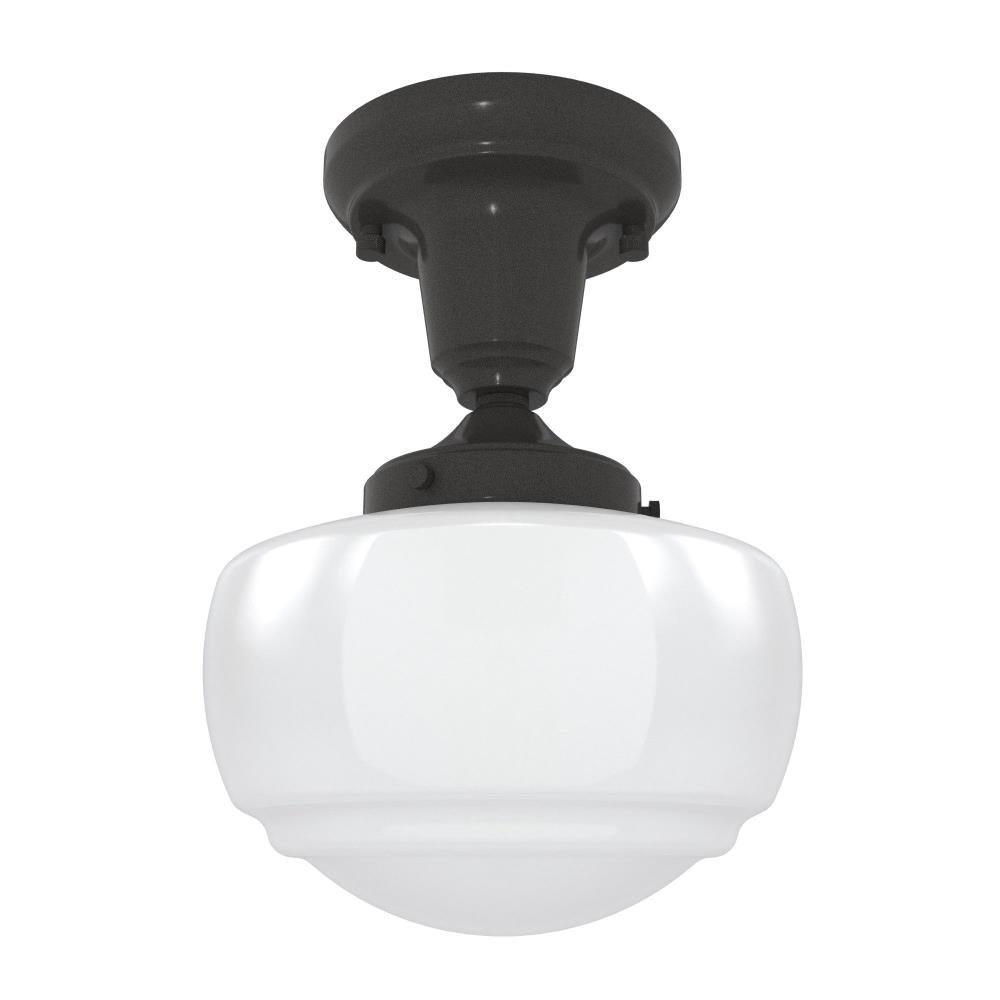 Traditional design. Elevated elements. The Saddle Creek mini pendant draws inspiration from the iconic American schoolhouse light but adds an updated touch with subtle detailing in the glass shade. For those who want all-in-one light fixtures, this schoolhouse-inspired mini pendant can also be installed as a semi-flush mount lighting. Rated for indoor use only Requires 1 E26 bulbs. Bulbs not included. MADE FOR INDOORS: For use in indoor spaces like kitchens, bedrooms, living rooms, dining rooms, and entryways. BULB RECOMMENDATION: Maximum 60 W per light bulb or equivalent LED bulb. Bulbs not included. CUSTOMIZABLE HANGING OPTIONS: With the minimum required downrod, the hanging length is 18.25 inches. When using all of the included downrod, the maximum hanging length is 66.25 inches.