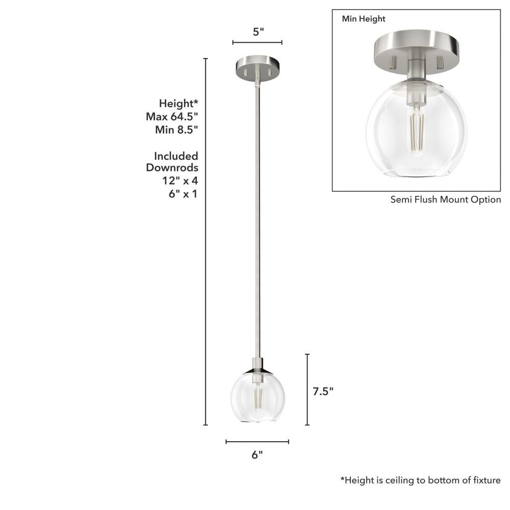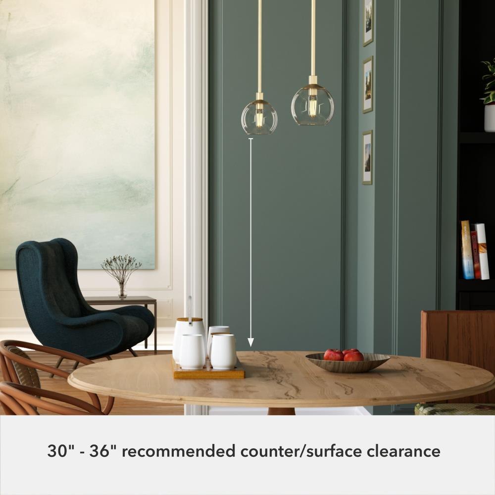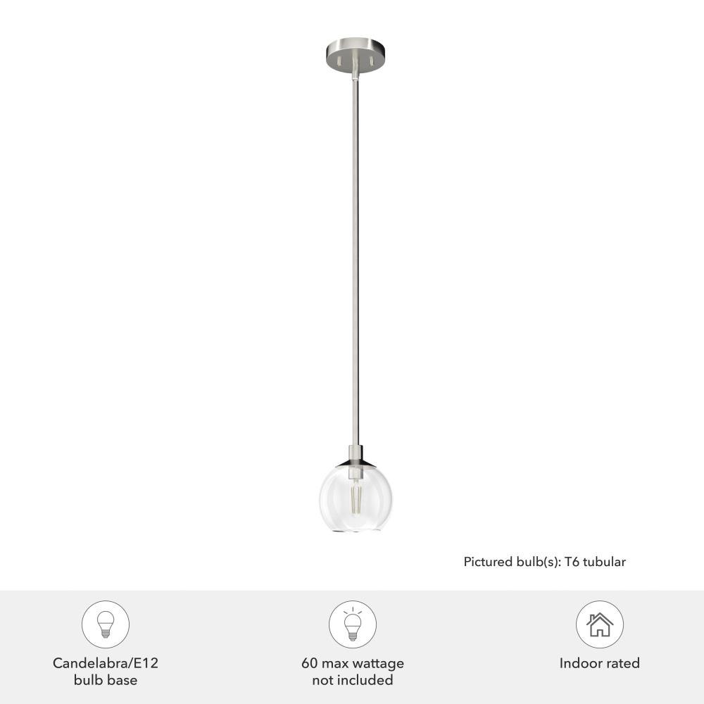 The Xidane mini pendant is a modern and versatile fixture. The edgy elegance of the Xidane mini pendant is perfect in a plethora of spaces. The brilliant design of the single orb floating above illuminating your space is striking. Use multiples over a table or a kitchen island to elevate your decor. The light of the Xidane collection brings glamour to every space. Rated for indoor use only Requires 1 E12 bulbs. Bulbs not included. MADE FOR INDOORS: For use in indoor spaces like kitchens, bedrooms, living rooms, dining rooms, and entryways. BULB RECOMMENDATION: Maximum 60 W per light bulb or equivalent LED bulb. Bulbs not included. PICTURED HERE: Match our image using T6 Tubular light bulbs. CUSTOMIZABLE HANGING OPTIONS: With the minimum required downrod, the hanging length is 8.5 inches. When using all of the included downrod, the maximum hanging length is 64.5 inches.