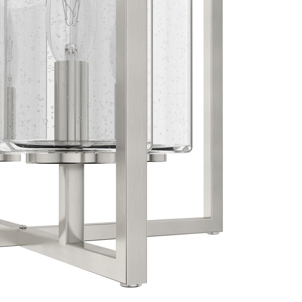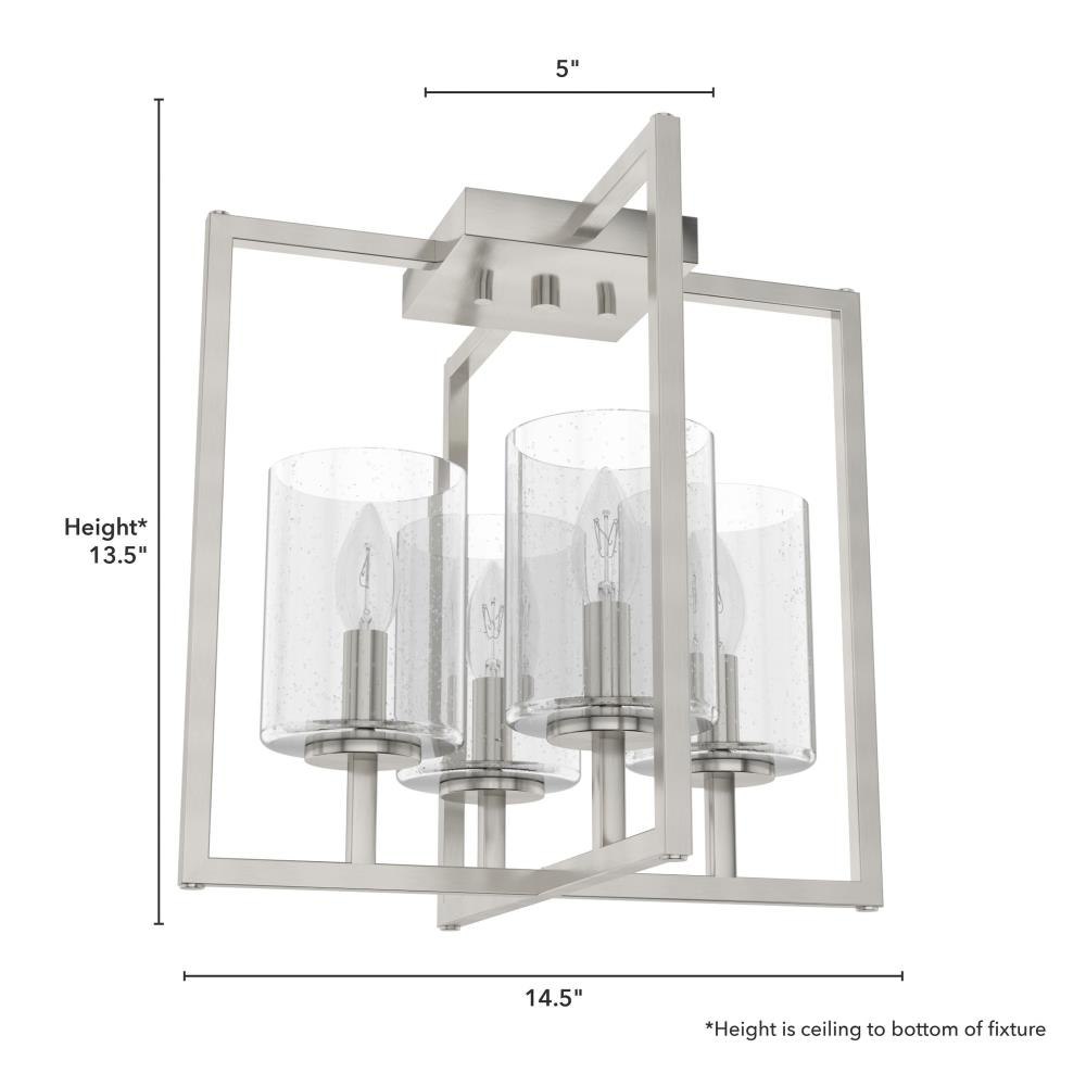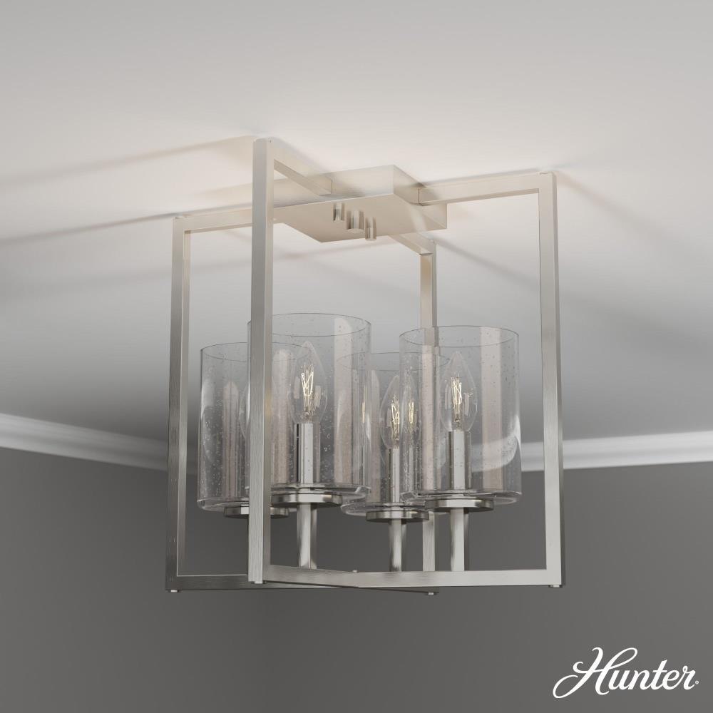 Bring serenity to any room with the Kerrison flush mount. This transitional design is a great fit with multiple styles. The metal and seeded glass fixture looks splendid in any space, from farmhouse to modern. Up the shimmer factor throughout your home with other lights from the Kerrison collection. Mix and match with fans from our ceiling fan collections to fully finish your space.. Rated for indoor use only. Requires 4 E12 bulbs. Bulbs not included.. MADE FOR INDOORS: For use in indoor spaces like kitchens, bedrooms, living rooms, dining rooms, and entryways.. BULB RECOMMENDATION: Maximum 60 W per light bulb or equivalent LED bulb. Bulbs not included.. PICTURED HERE: Match our image using B10 Candle light bulbs.. WARRANTY: One-year limited warranty backed by the trusted experts at Hunter.