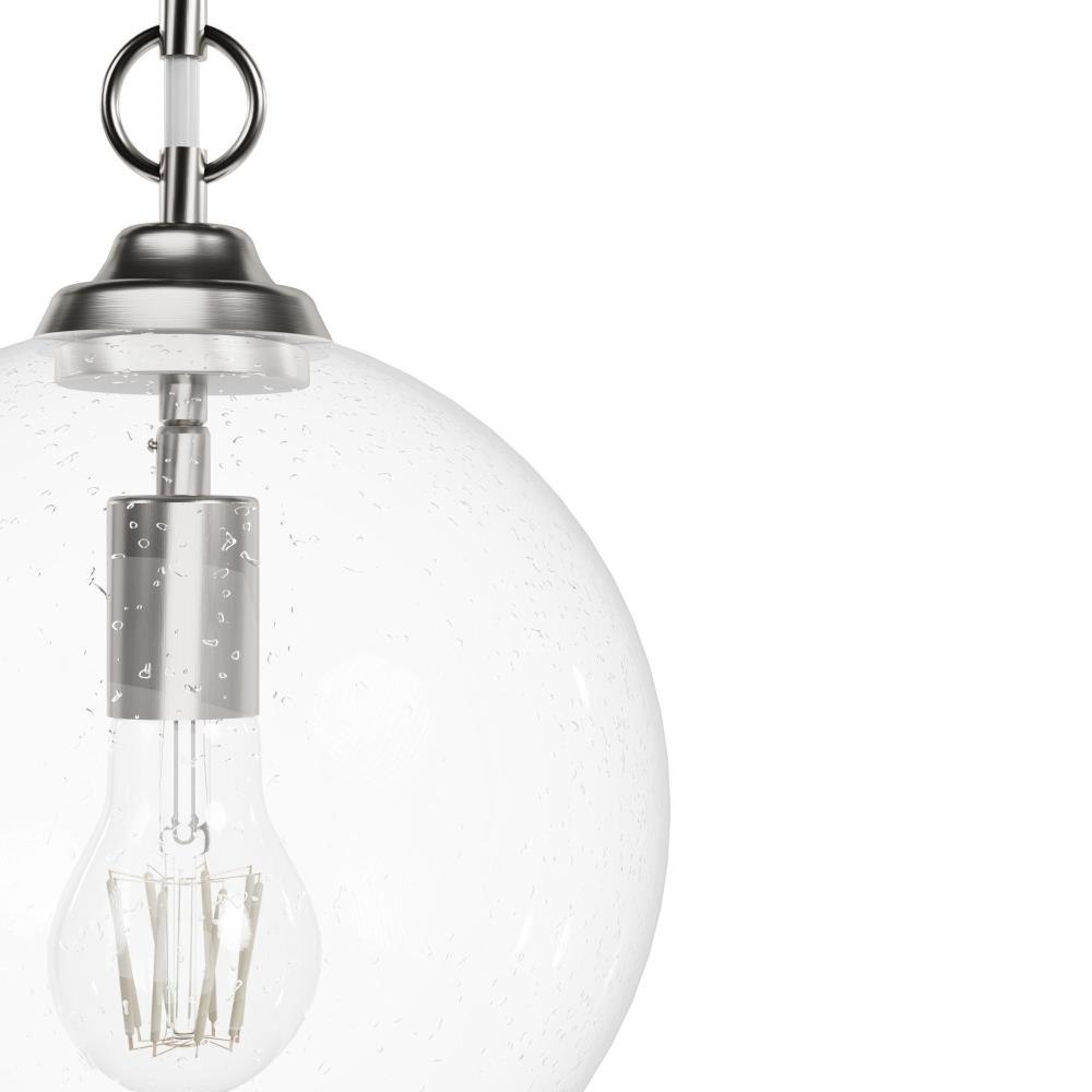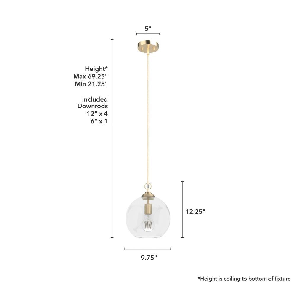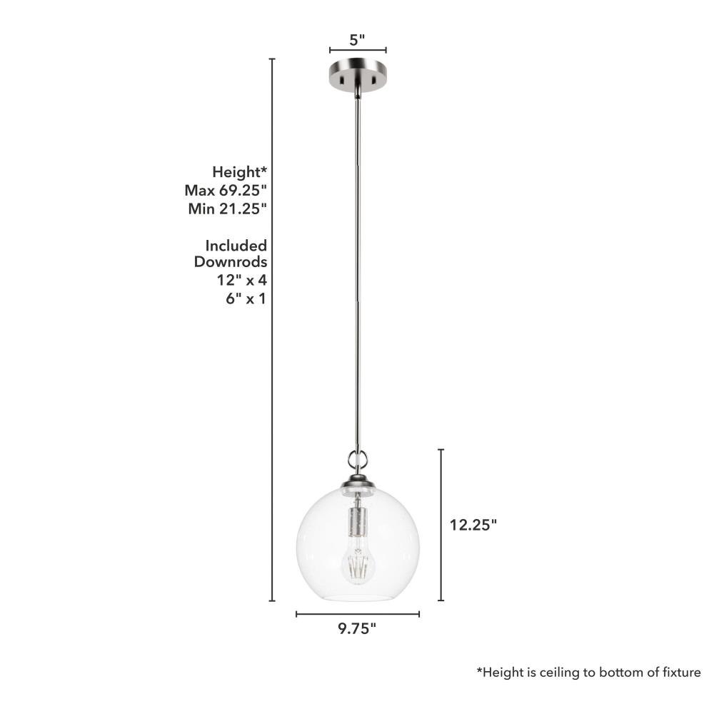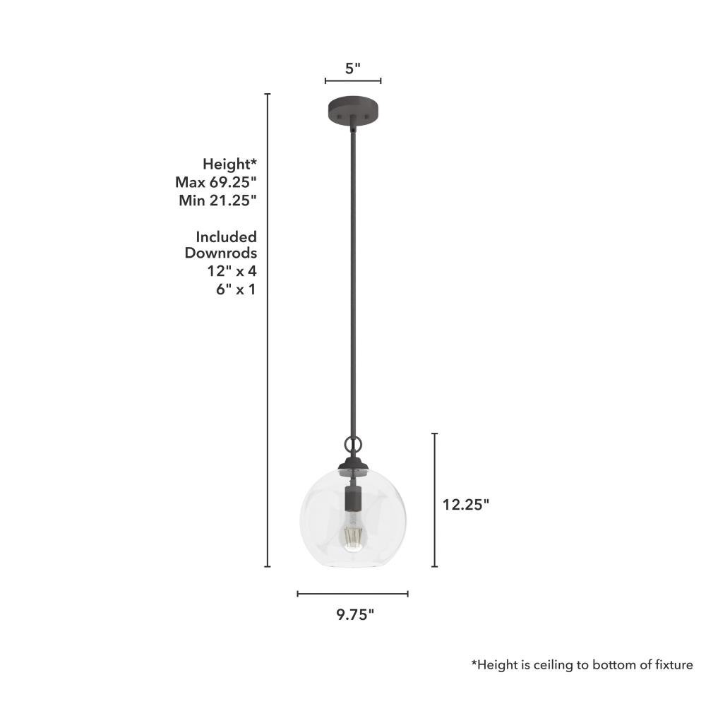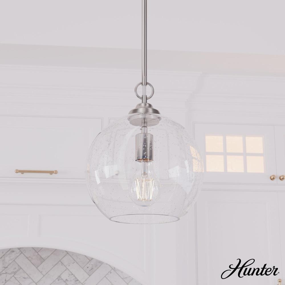 The High Oaks pendant offers a bold, brilliant look for your homes cooking, dining or transitional spaces. A masterful blend of formal elegance and calming comfort, the High Oaks pendant brings light and warmth closer to the action while complementing clean cabinet lines with its sleek, spherical shape.Rated for indoor use onlyRequires 1 E26 bulbs. Bulbs not included.MADE FOR INDOORS: For use in indoor spaces like kitchens, bedrooms, living rooms, dining rooms, and entryways.BULB RECOMMENDATION: Maximum 60 W per light bulb or equivalent LED bulb. Bulbs not included.PICTURED HERE: Match our image using A19 Standard light bulbs.CUSTOMIZABLE HANGING OPTIONS: With the minimum required downrod, the hanging length is 21.25 inches. When using all of the included downrod, the maximum hanging length is 69.25 inches.WARRANTY: One-year limited warranty backed by the trusted experts at Hunter.