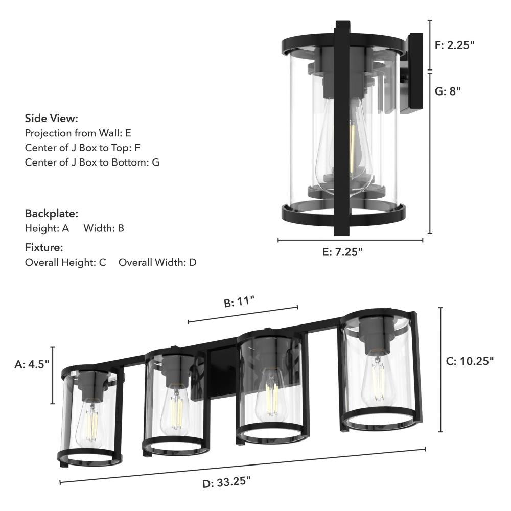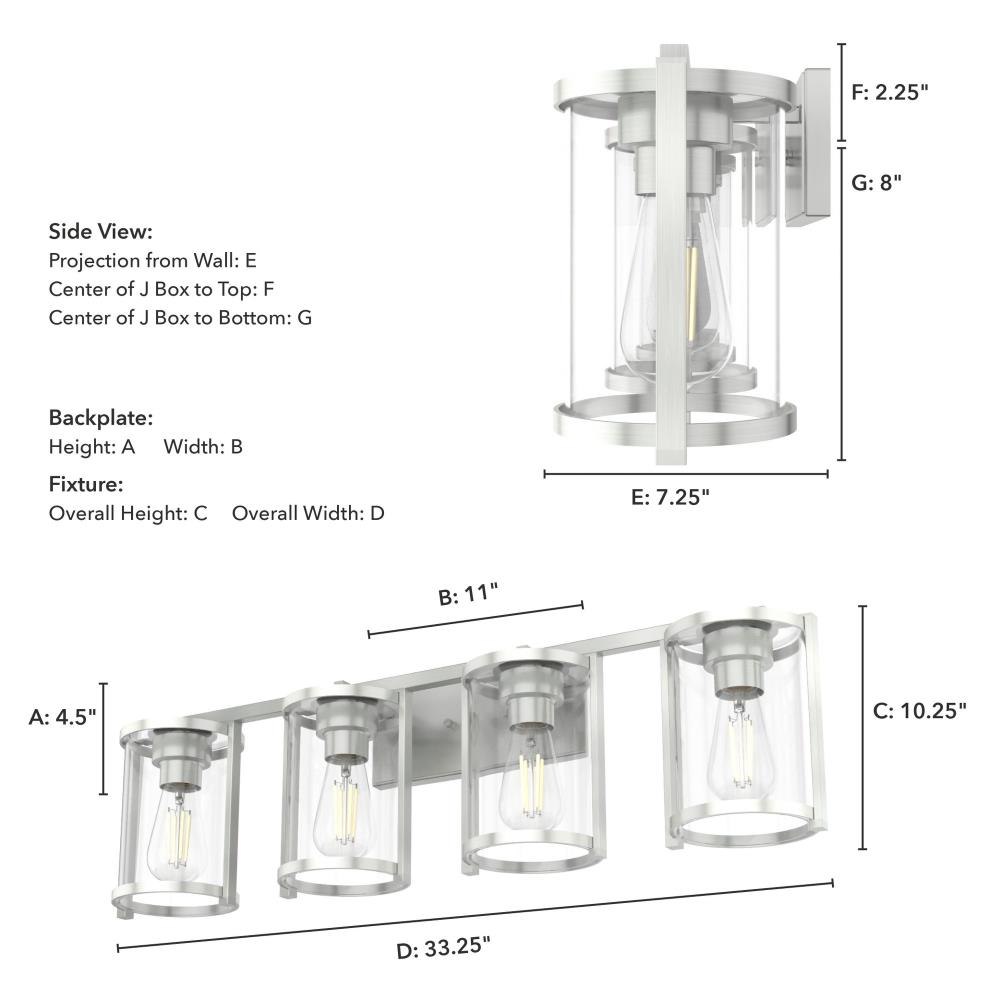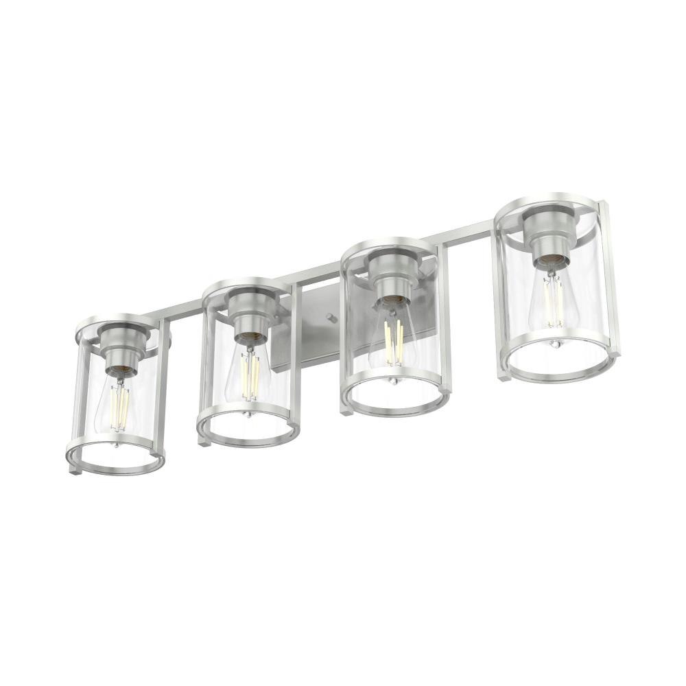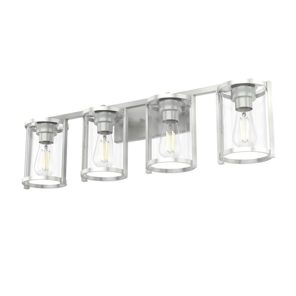 Enjoy small details on a big fixture. All the modern touches on the Astwood’s modern vanity light come together to form a memorable fixture. A part of our Astwood collection, this fixture stands out with its bold features and art deco-inspired design. Plus, its damp rating makes it a perfect addition to your moisture-prone spaces. mix andmatch with other fixtures from this collection or from our ceiling fan designs.. Rated for indoor spaces exposed to humidity. Requires 4 E26 bulbs. Bulbs not included.. INDOOR-DAMP RATED: For use in indoor spaces exposed to humidity like bathrooms and laundry rooms.. BULB RECOMMENDATION: Maximum 60 W per light bulb or equivalent LED bulb. Bulbs not included.. PICTURED HERE: Match our image using ST64 Edison light bulbs.. COORDINATING COLLECTION: Works with Astwood ceiling fan collection. WARRANTY: One-year limited warranty backed by the trusted experts at Hunter.