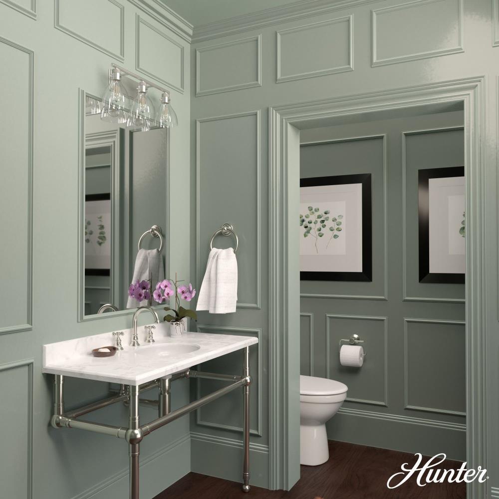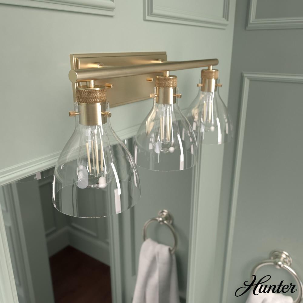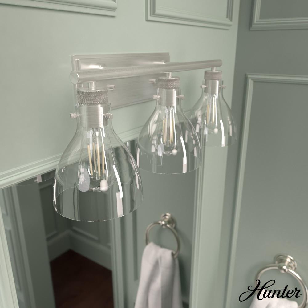 A timeless fixture with modern influences. The elegant Van Nuys vanity light is the perfect addition to spaces needing an ambient fixture, including bathrooms. With its classic yet simple design, this fixture seamlessly fits into both casual and glamorous spaces. Plus, a part of our Van Nuys collection, this vanity light pairs wonderfully with our fixtures. Mix and match with fans from our ceiling fan collections to fully finish your space.. Rated for indoor spaces exposed to humidity. Requires 3 E26 bulbs. Bulbs not included.. INDOOR-DAMP RATED: For use in indoor spaces exposed to humidity like bathrooms and laundry rooms.. BULB RECOMMENDATION: Maximum 60 W per light bulb or equivalent LED bulb. Bulbs not included.. PICTURED HERE: Match our image using ST64 Edison light bulbs.. WARRANTY: One-year limited warranty backed by the trusted experts at Hunter.