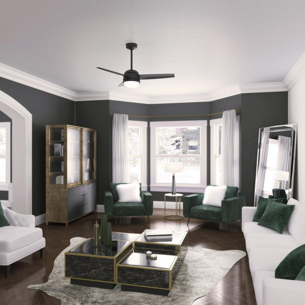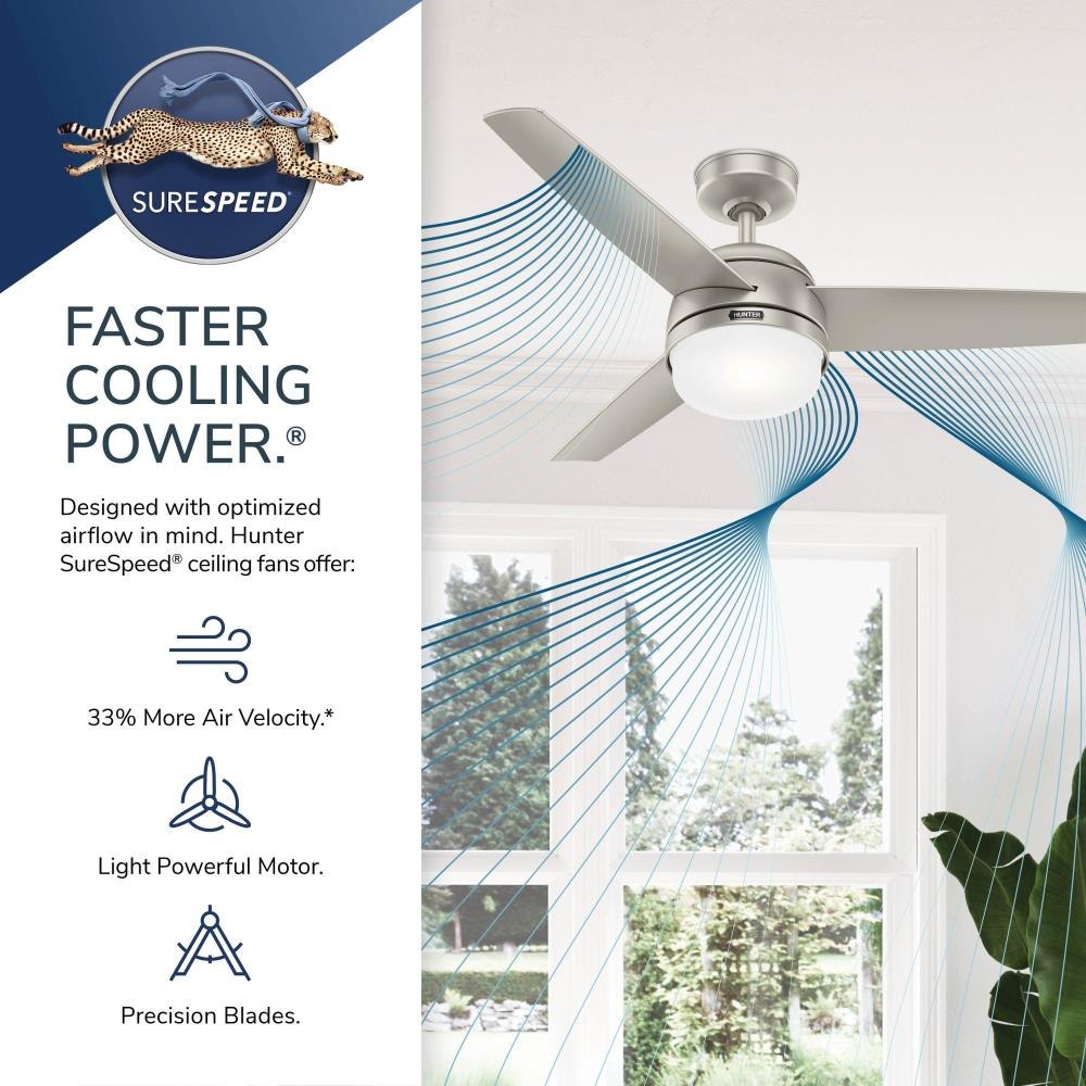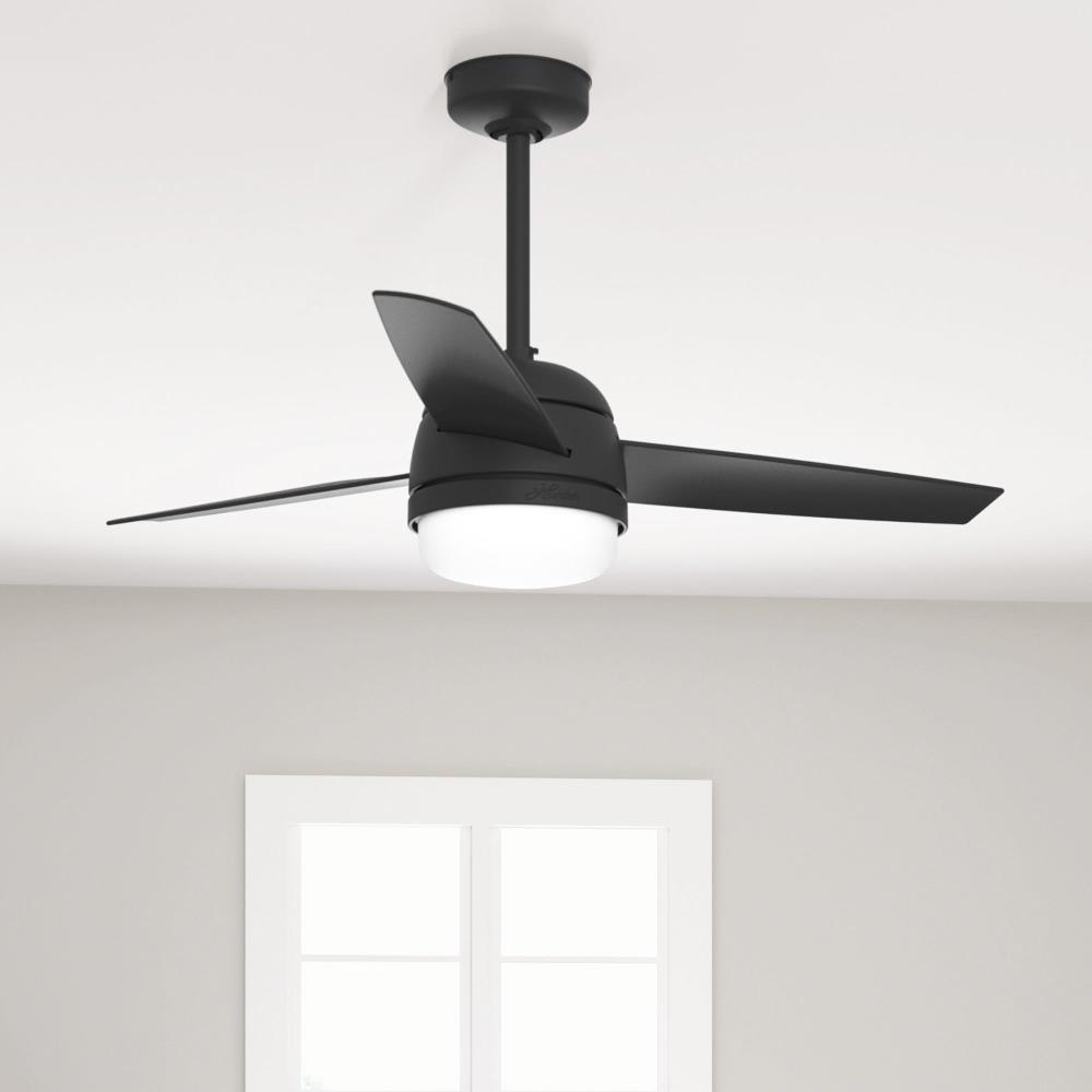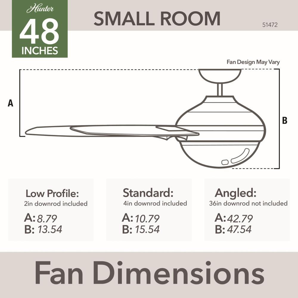 The Midtown ceiling fan makes itself at home in a variety of spaces. The 48-Inch blade span makes it a great fit for many rooms while the design unifies simple and modern styles. The Midtown features our exclusive SureSpeed Guarantee, delivering optimized, high-speed cooling. Create the perfect ambiance by using the included handheld remote to easily adjust the dimmable integrated LED light and fan speed. Built with our SureSpeed Guarantee to deliver faster airflow you can feel Rated for indoor use only 2 bulbs included Handheld remote included AIRFLOW YOU FEEL: Built with our SureSpeed Guarantee, this fan delivers high airflow velocity while maintaining quiet, wobble-free performance. EASY CONTROL FUNCTION: Use the control to adjust the fan speed and dim the light. WHISPER-QUIET MOTOR: 3-speed, WhisperWind reversible motor for optimal performance in summer and winter. SMALL ROOM FAN: Ideal size for home offices, laundry rooms, and bedrooms. STANDARD PROFILE MOUNTING: 4 Inch and 2 Inch downrods included. COMPATIBLE ACCESSORIES: Works with Hunter and Casablanca accessories, not including Hunter Original accessories WARRANTY: Limited Lifetime Motor Warranty backed by the only company with over 135 years in the fan business