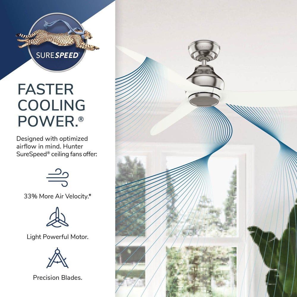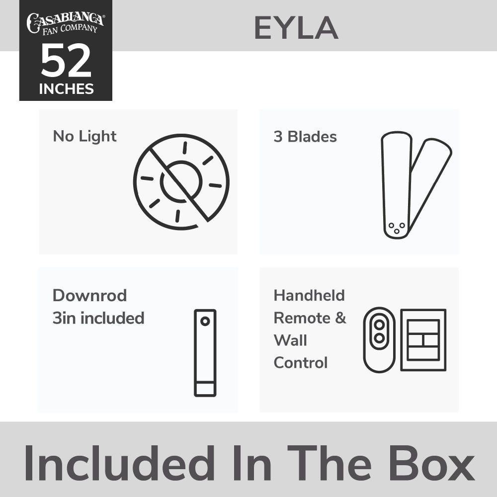 The Eyla Ceiling Fan delivers elevated comfort with effortless style and energy-saving performance. Designed for indoor spaces like bedrooms and living rooms, it’s built for year-round use. ENERGY STAR® certified, it’s 64% more efficient than standard fans and powered by a whisper-quiet 6-speed Eco Whisper DC motor with reversible functionality. A handheld remote lets you control speed, light, and seasonal settings with ease. Prefer a sleek, light-free look? Use the included No Light Cap. With a standard 3-inch downrod and extension options, Eyla is backed by Hunter’s Limited Lifetime Motor Warranty.