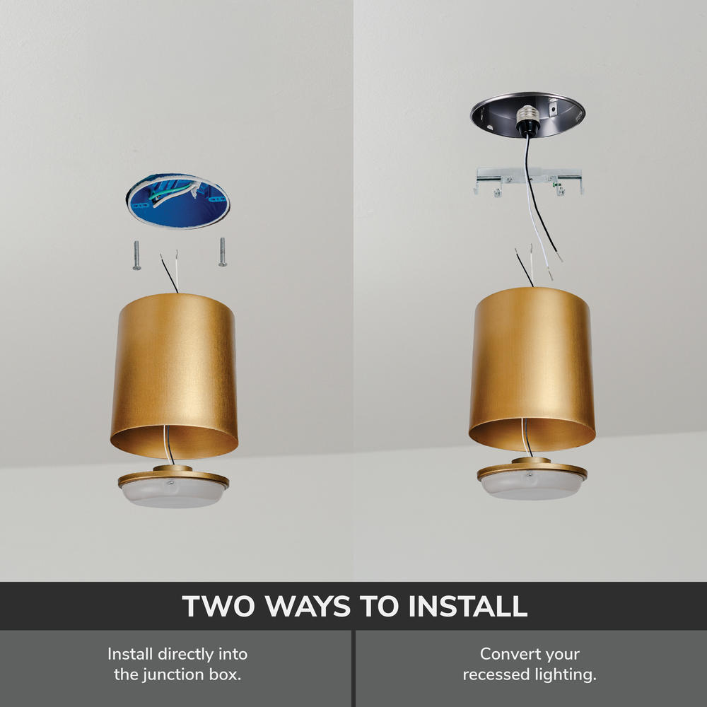 - Converts recessed can lights into a decorative fixture with a simple screw-in electrical connection