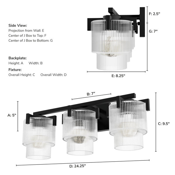 Brighten your bathroom with sophisticated charm through the Ontario 3-light bath vanity. Featuring trending ribbed glass uniquely molded in one piece, this vanity light adds a touch of sophistication to any space. Designed for durability, it's rated for damp locations, making it ideal for bathrooms. The Ontario vanity light seamlessly combines timeless design with practical functionality, offering a luxurious and stylish lighting solution for your home.