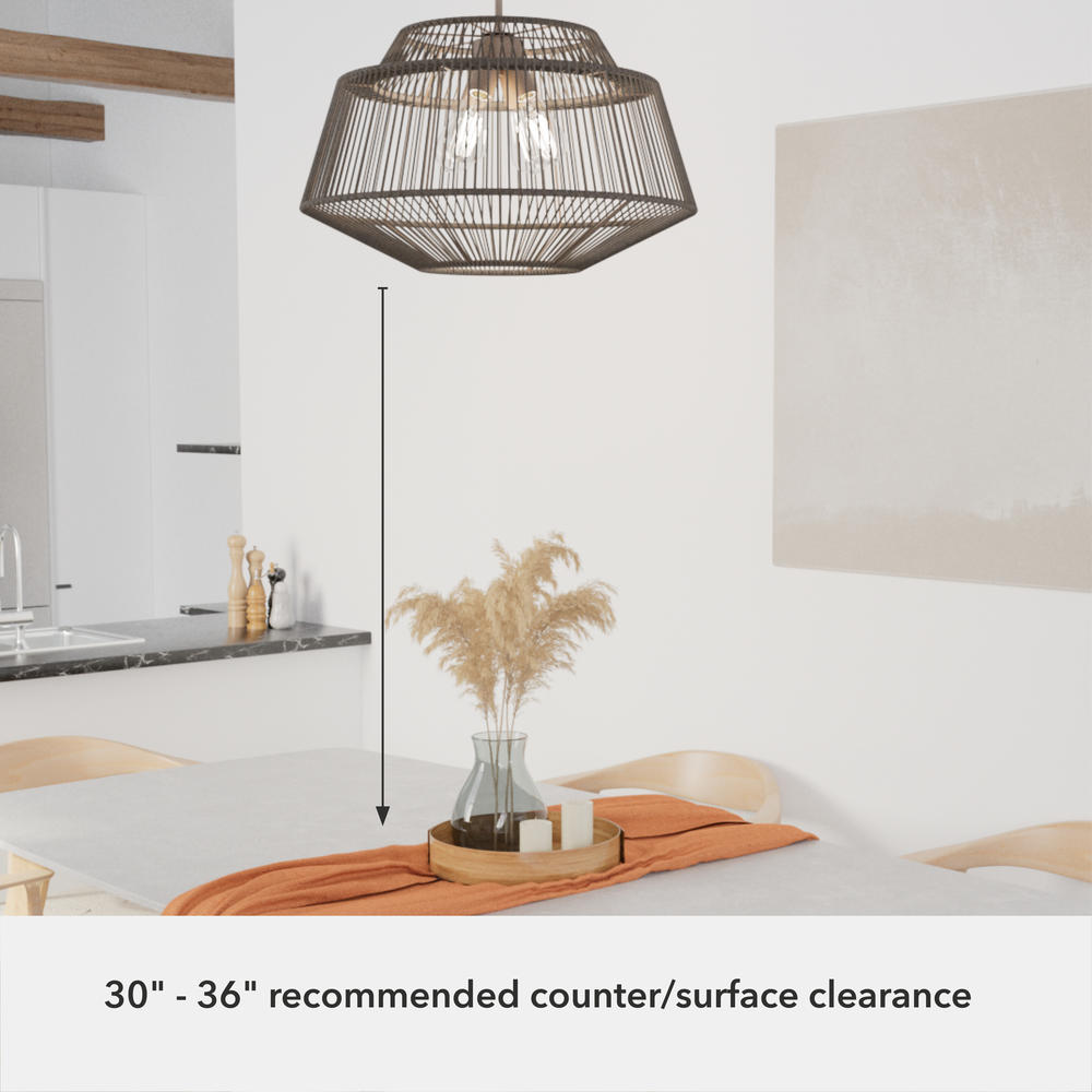 Realize your bohemian dreams with the captivating Brookhollow 24.5 inch Pendant. Designed in collaboration with the talented Jasmine Roth, this exquisite pendant features woven natural rattan shades that allow warm, inviting light to permeate, casting a radiant glow and accentuating the chic allure of the Brookhollow Pendant. This enchanting yet unpretentious fixture infuses personality and charm into any space. Effortlessly mix and match it with other luminaires from our diverse lighting collections or our sophisticated ceiling fan designs to create a harmonious and stylish atmosphere.