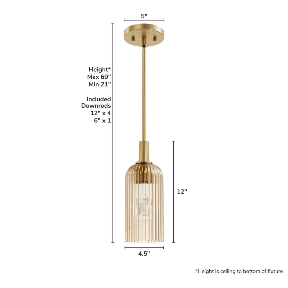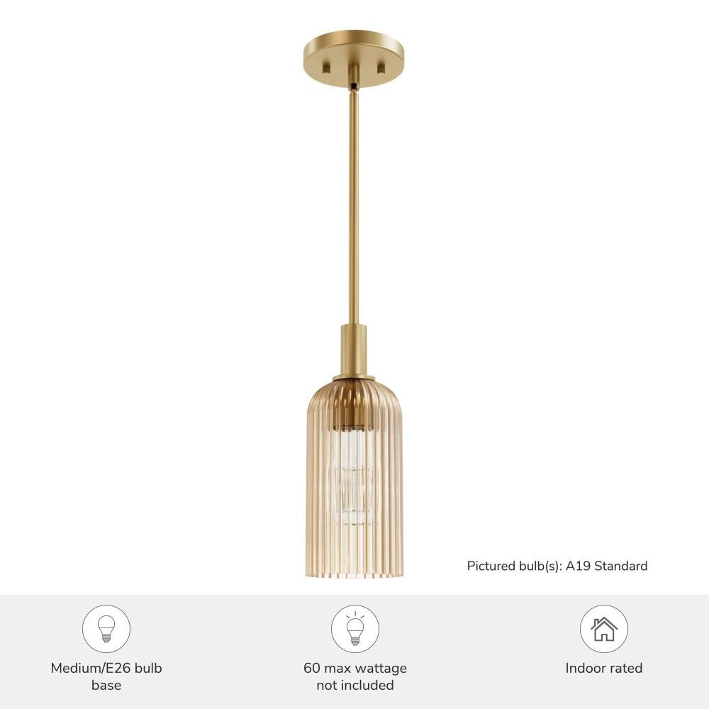 Meet the dazzling Beverly Glen 1 Light Mini Pendant from the Jasmine Roth Collection. Choose from a Luxe Gold or Matte Black finish paired with plated, high-quality amber or clear glass to perfectly complement your kitchen island. The scratch-resistant, trending ribbed glass adds a touch of modern elegance. This indoor-rated fixture's formal modern design artfully blends classic elegance with modern appeal, making it a versatile choice for any interior. Illuminate your space with a warm, inviting glow and elevate your home décor with the sophisticated charm of the Beverly Glen Mini Pendant. Transform your kitchen into a stylish haven with this unique and timeless piece.