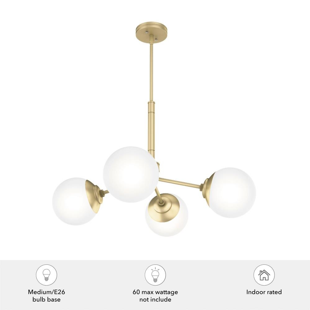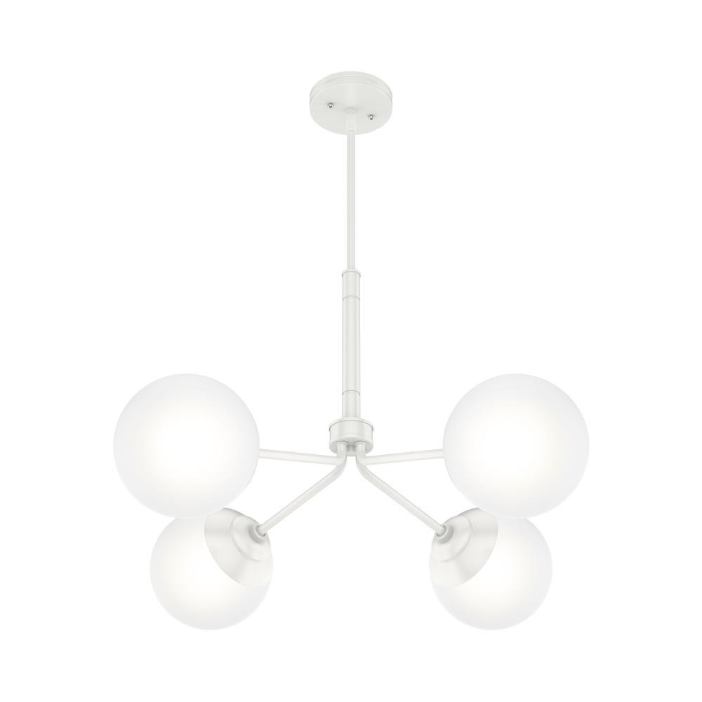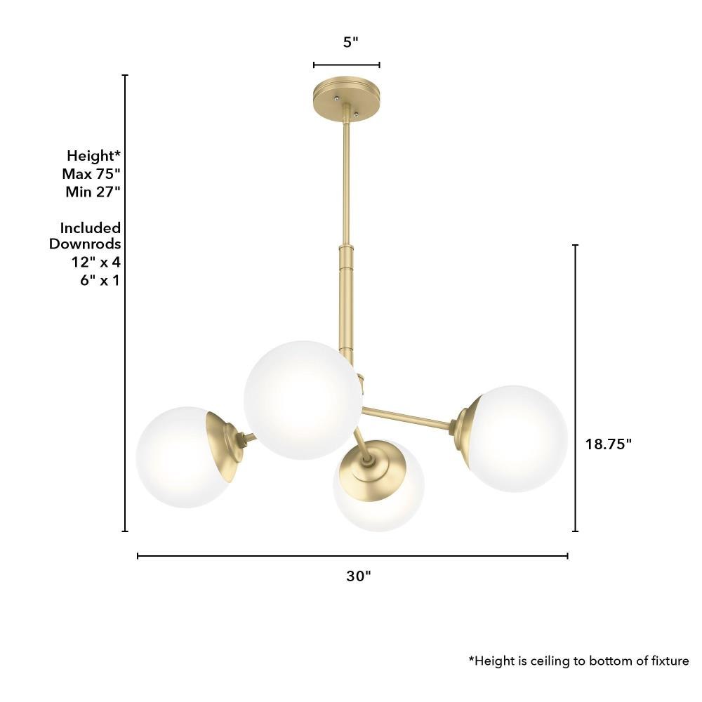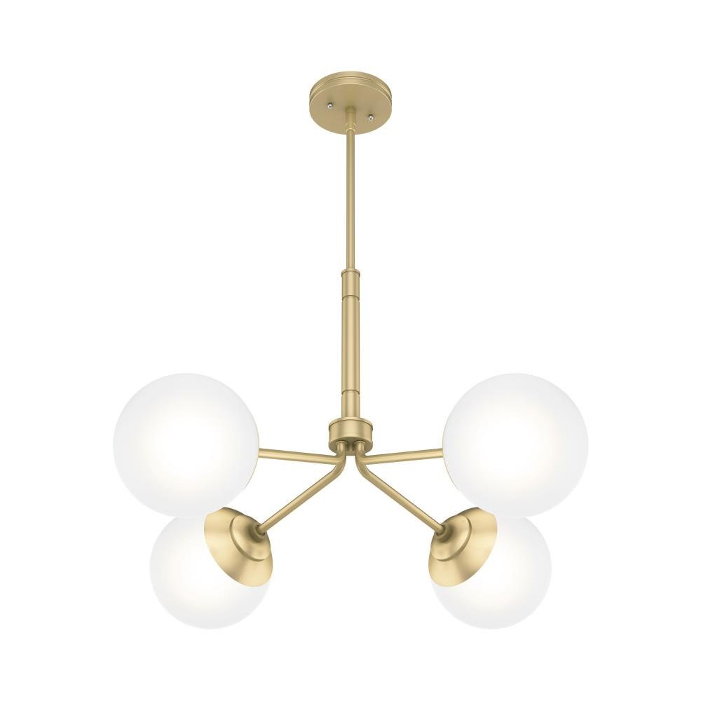 The Hepburn Collection exemplifies modern design while also capturing the essence of the 1920s. The Hepburn 4 Light Chandelier graces rooms with its cased white globe and modern brass detailing. Pair this chandelier with the other members in the Hepburn Collection for a completed look.