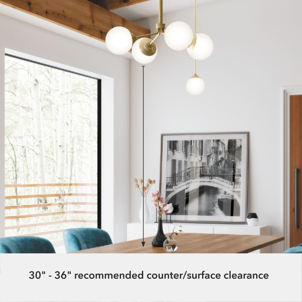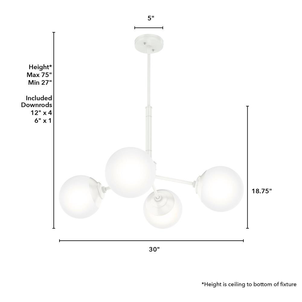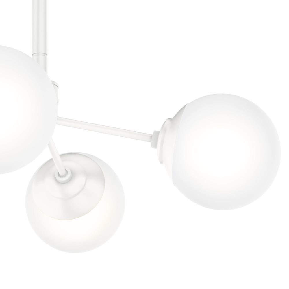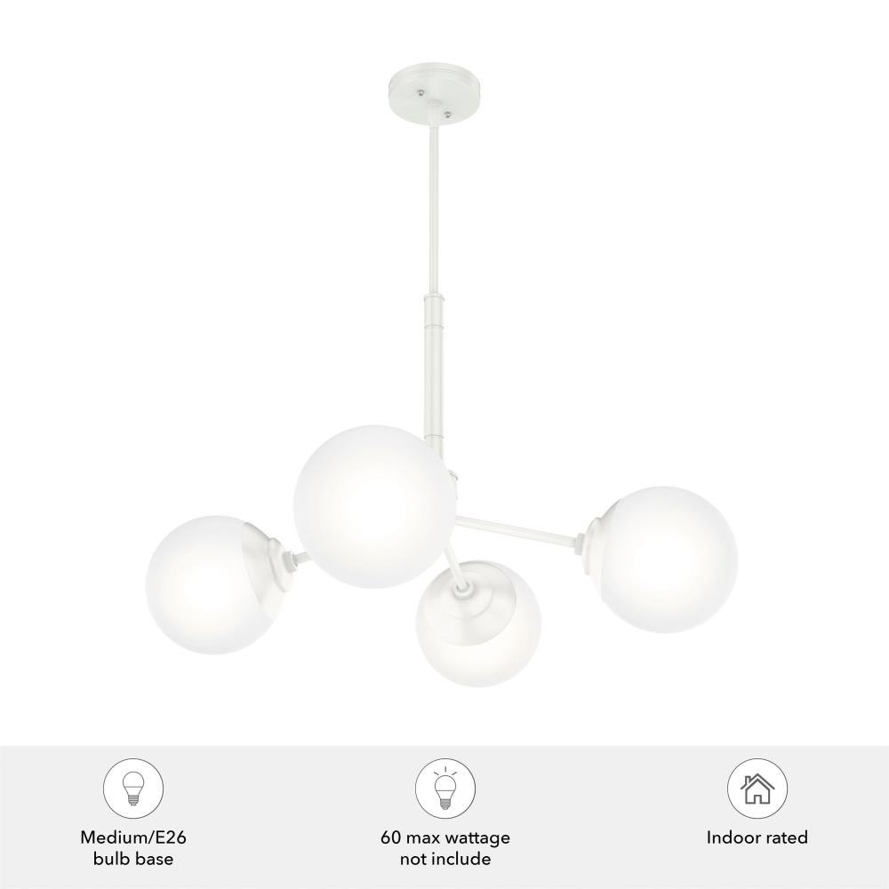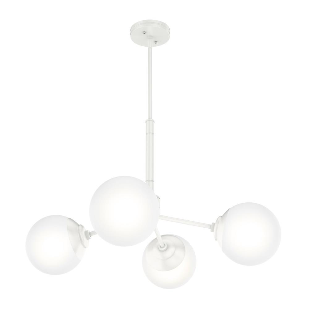 The Hepburn Collection exemplifies modern design while also capturing the essence of the 1920s. The Hepburn 4 Light Chandelier graces rooms with its cased white globe and modern brass detailing. Pair this chandelier with the other members in the Hepburn Collection for a completed look.