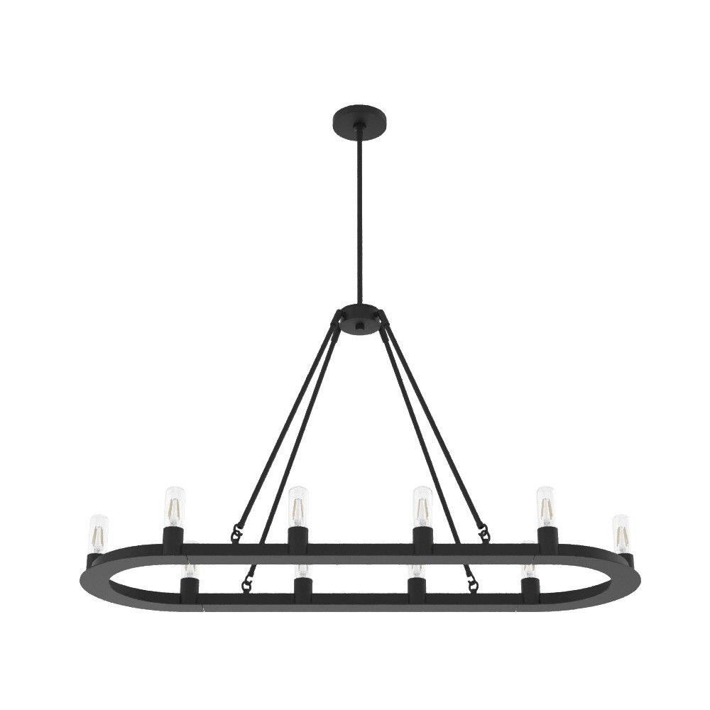 The simple aesthetic of the Saddlewood 10 Light Chandelier lets you customize the look with the bulb style you choose, creating a dining room lighting look thats uniquely yours. The oblong chandelier design makes a statement and provides ample lighting in modern industrial and farmhouse style dining rooms.