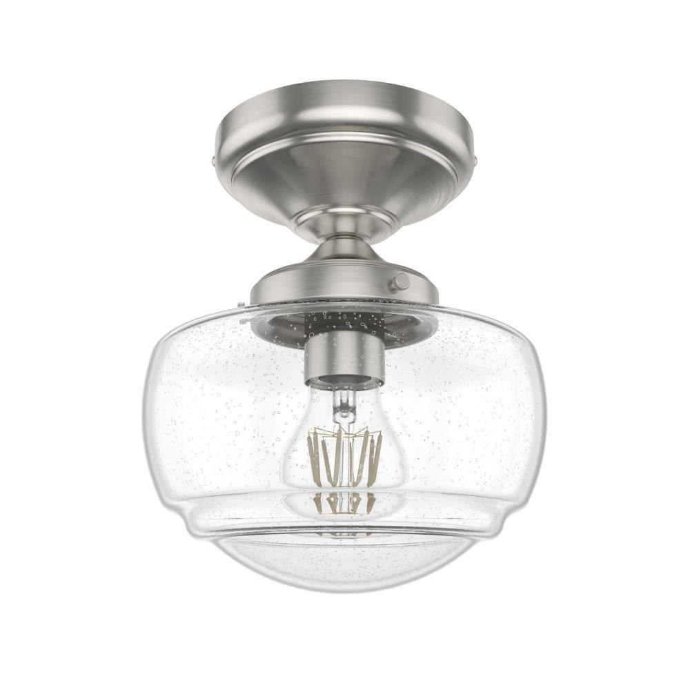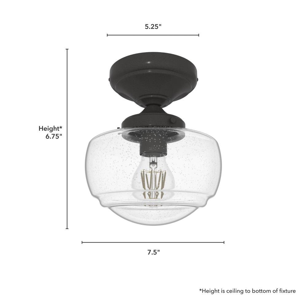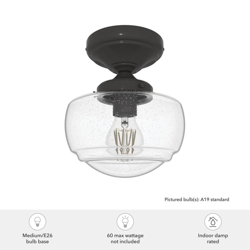Iconic style, reimagined. Inspired by the classic American schoolhouse light, the Saddle Creek 1 light semi-flush mount combines simple design elements to create a subtly sophisticated style. Available in cased white or clear seeded glass, the Saddle Creekâs semi-flush mount makes this fixture an ideal choice for smaller spaces or rooms with low ceilings. Rated for indoor spaces exposed to humidity Requires 1 E26 bulbs. Bulbs not included. INDOOR-DAMP RATED: For use in indoor spaces exposed to humidity like bathrooms and laundry rooms. BULB RECOMMENDATION: Maximum 60 W per light bulb or equivalent LED bulb. Bulbs not included. FOR LOW CEILINGS: Fits close to the ceiling to optimize headspace and provide stylish lighting.