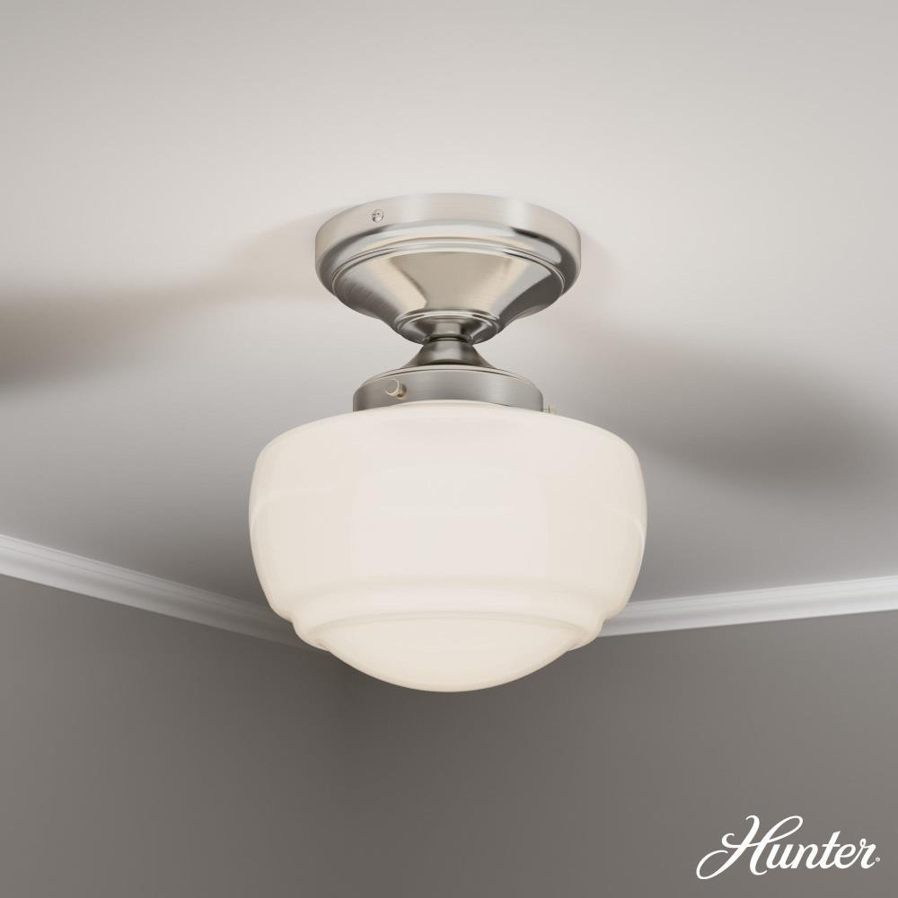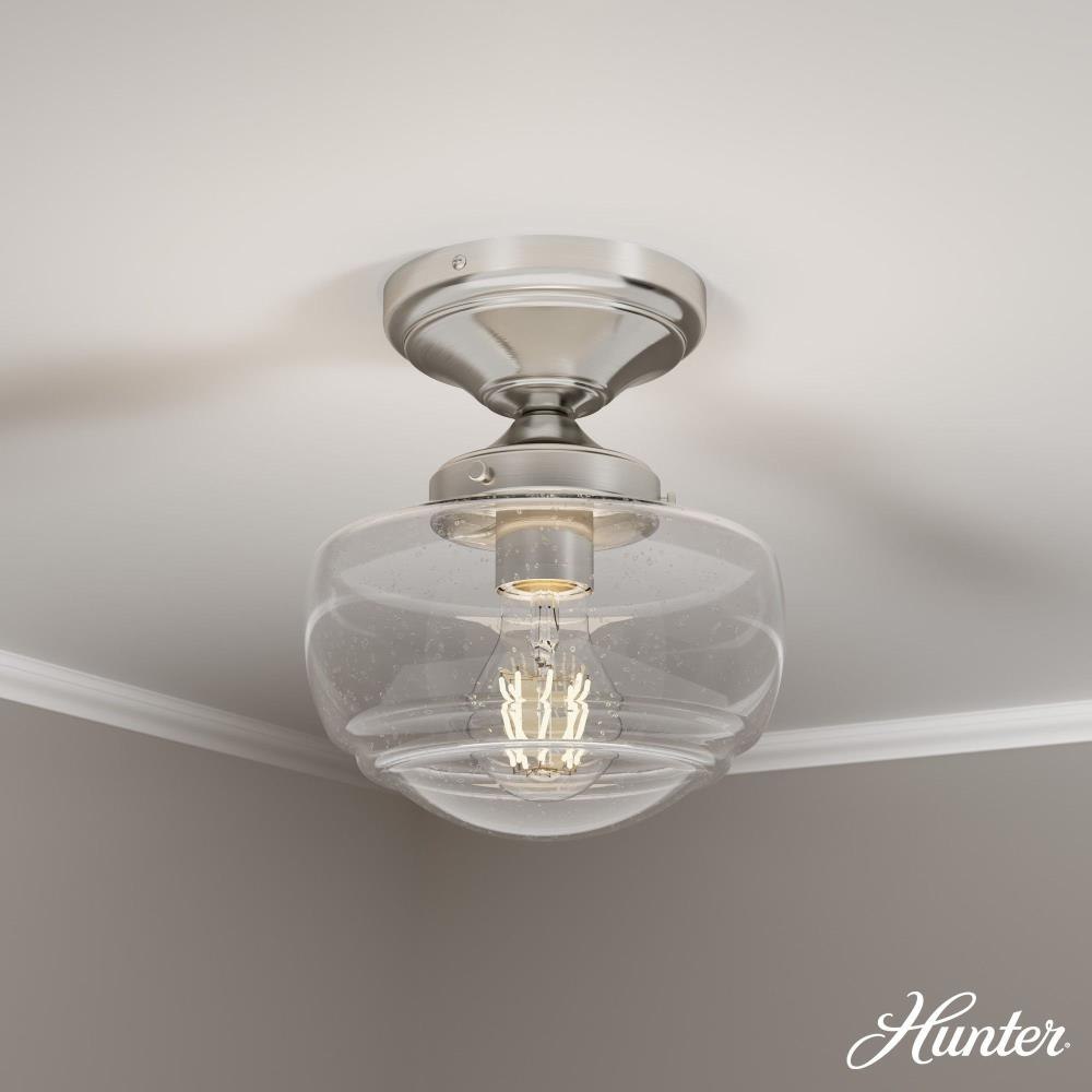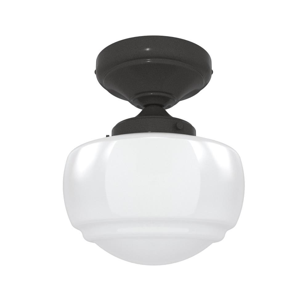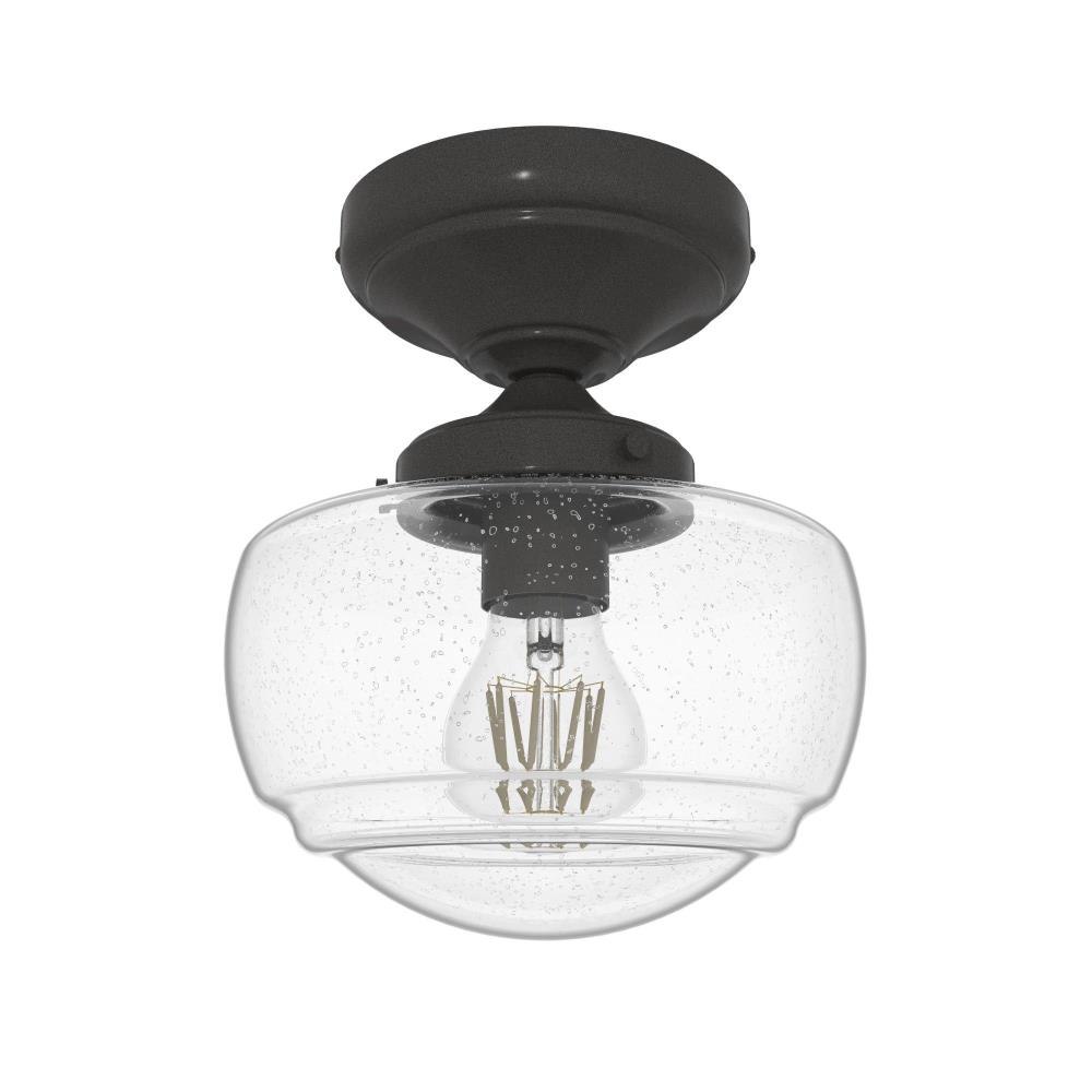 Iconic style, reimagined. Inspired by the classic American schoolhouse light, the Saddle Creek 1 light semi-flush mount combines simple design elements to create a subtly sophisticated style. Available in cased white or clear seeded glass, the Saddle Creekâs semi-flush mount makes this fixture an ideal choice for smaller spaces or rooms with low ceilings. Rated for indoor spaces exposed to humidity Requires 1 E26 bulbs. Bulbs not included. INDOOR-DAMP RATED: For use in indoor spaces exposed to humidity like bathrooms and laundry rooms. BULB RECOMMENDATION: Maximum 60 W per light bulb or equivalent LED bulb. Bulbs not included. FOR LOW CEILINGS: Fits close to the ceiling to optimize headspace and provide stylish lighting.