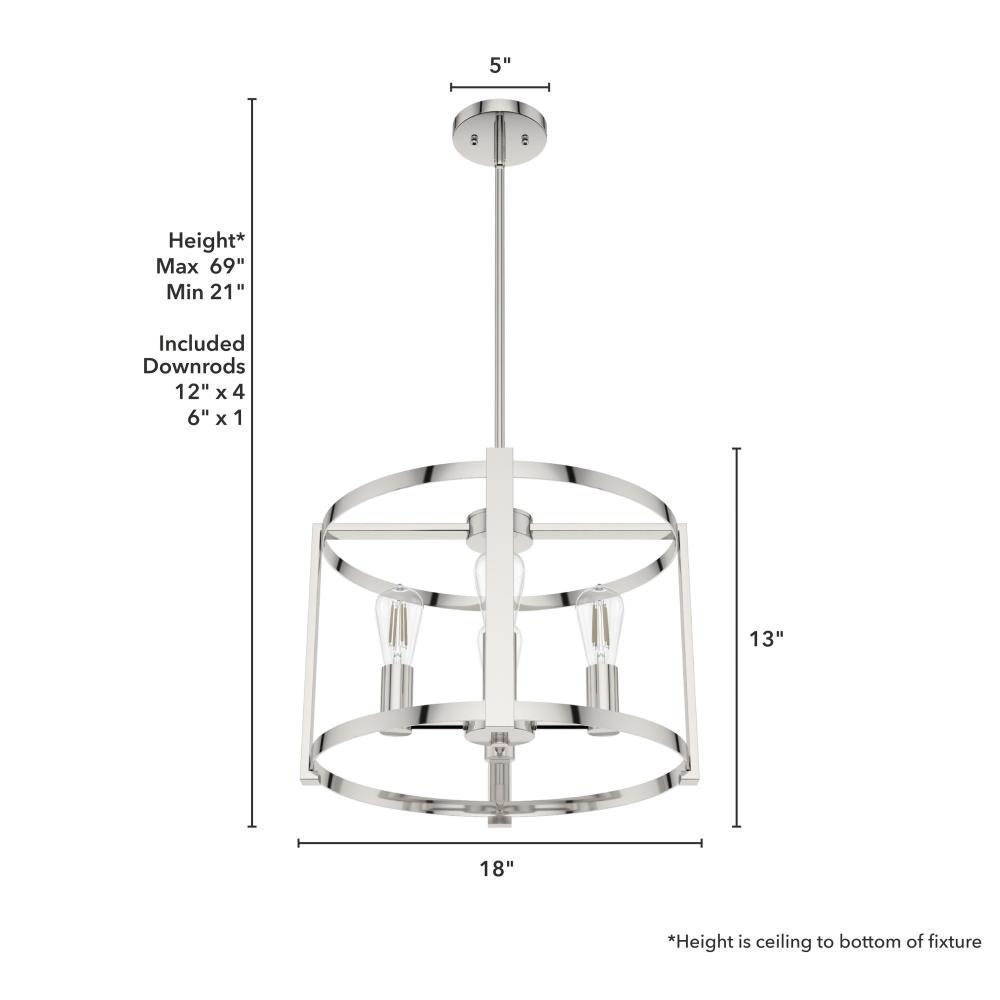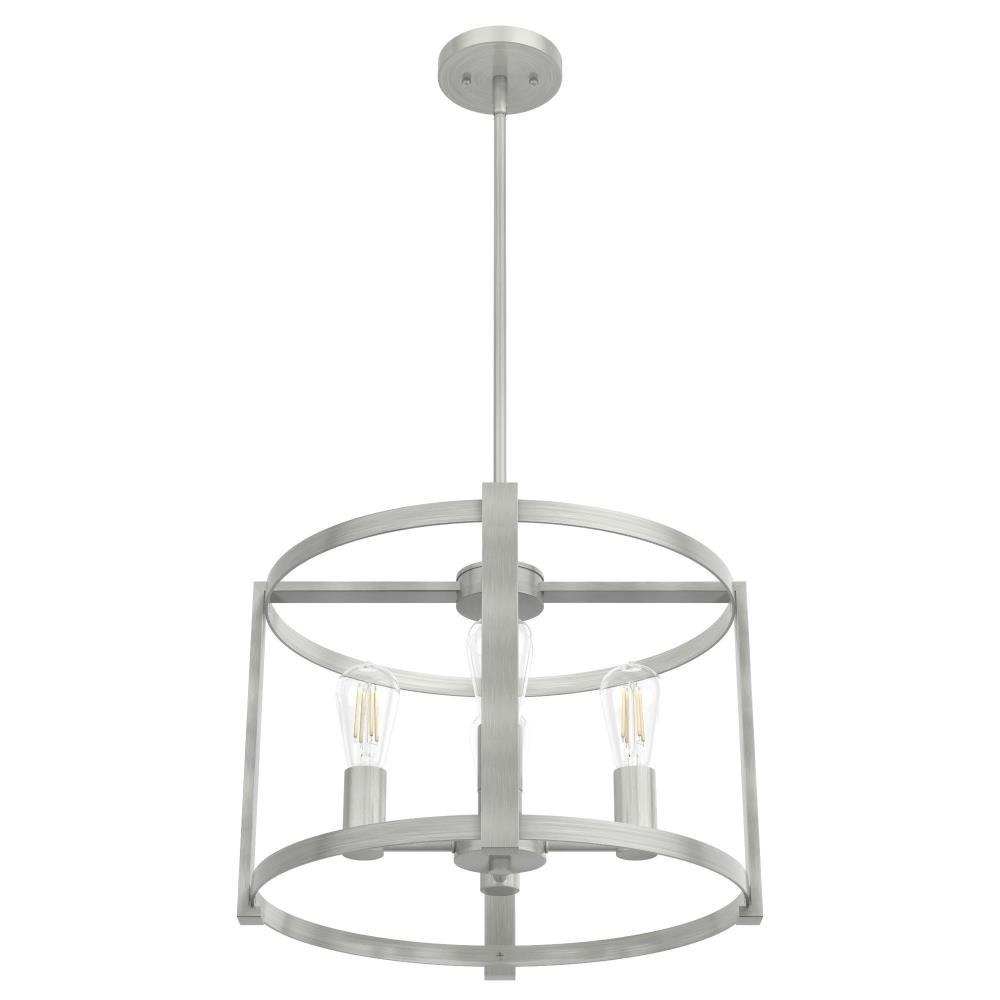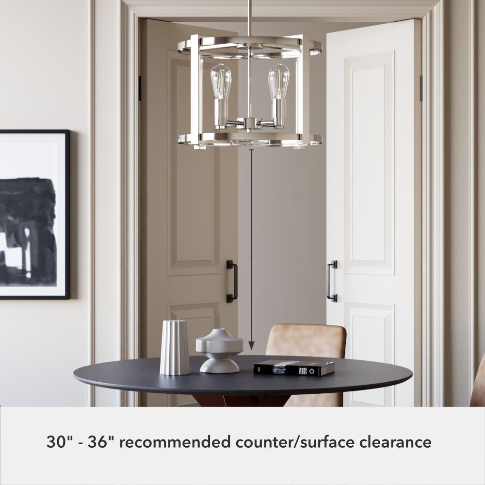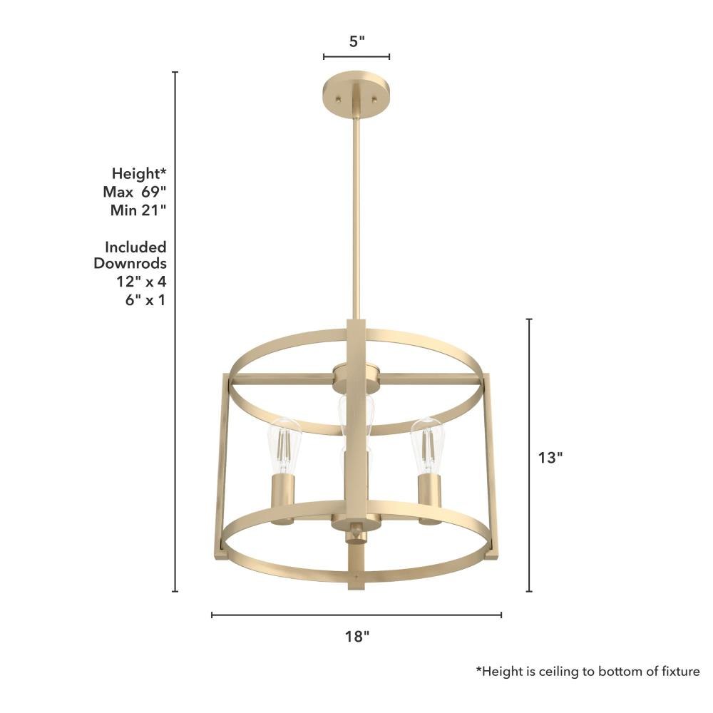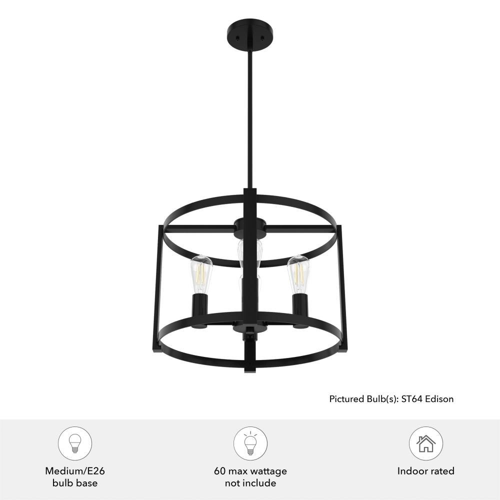 The simplest design can make the most impact. The Astwood round chandelier features thoughtful, subtle art deco detailing in the caged design. The clean lines and classic finishes make it a simple yet stunning fixture in casual, modern spaces.Rated for indoor use onlyRequires 4 E26 bulbs. Bulbs not included.MADE FOR INDOORS: For use in indoor spaces like kitchens, bedrooms, living rooms, dining rooms, and entryways.BULB RECOMMENDATION: Maximum 60 W per light bulb or equivalent LED bulb. Bulbs not included.PICTURED HERE: Match our image using E26 light bulbs.CUSTOMIZABLE HANGING OPTIONS: Includes one 6 inch downrod and four 12 inch downrods for height adjustments between 21 inches and 69 inches.COORDINATING COLLECTION: Works with Astwood ceiling fan collectionWARRANTY: One-year limited warranty backed by the trusted experts at Hunter.