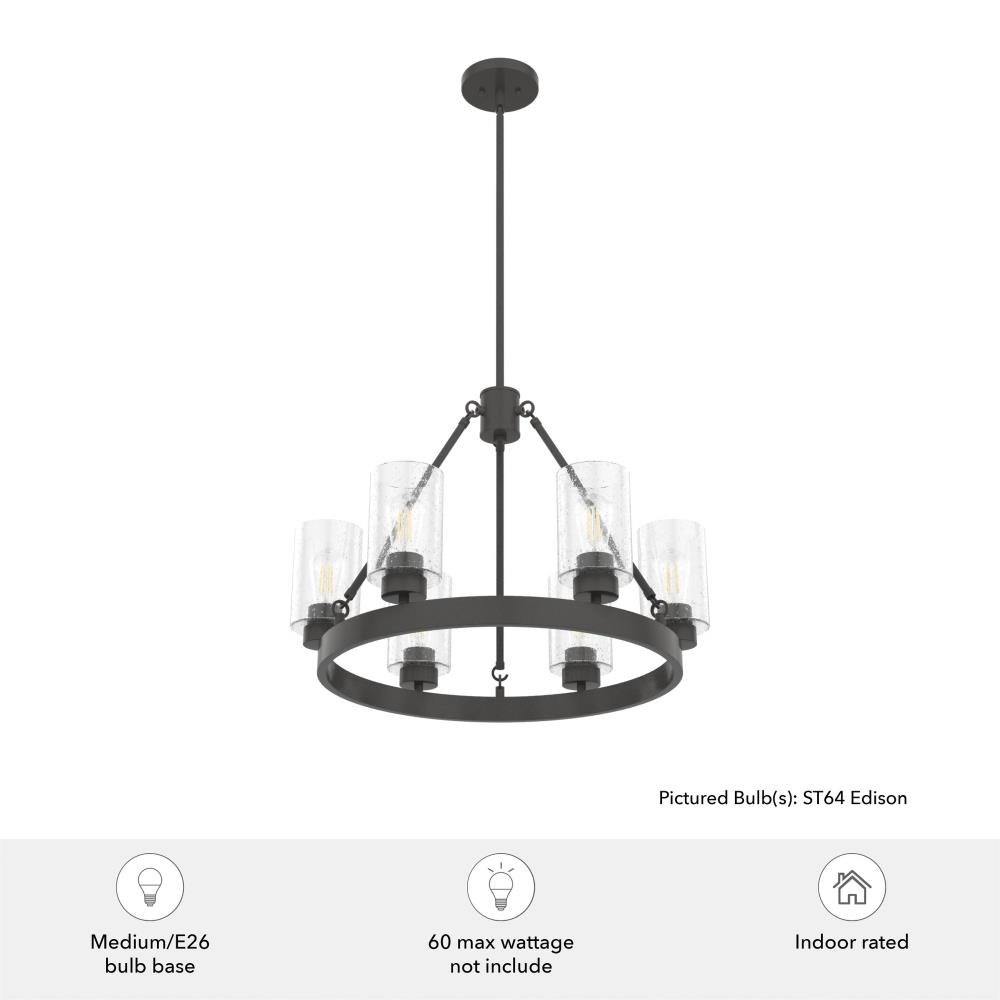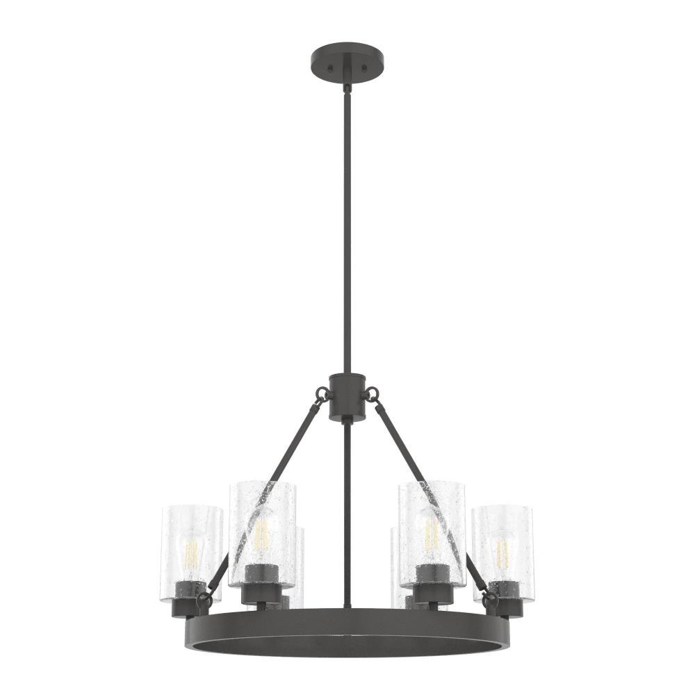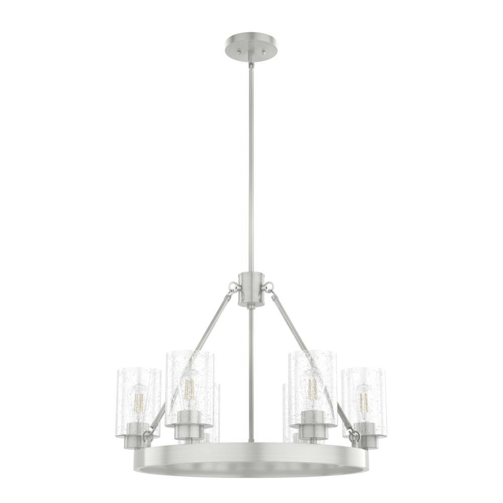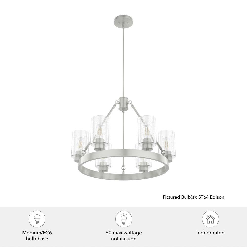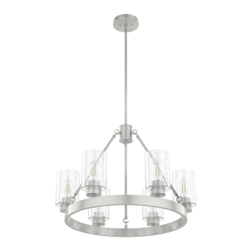 Illuminate your space in stunning fashion with the Hartland. Light reflects from this round chandeliers seeded glass shades in a striking way, whether from the bulb or sunlight. The Hartland 6-light chandelier delivers a revised classic look that complements a variety of styles and spaces.