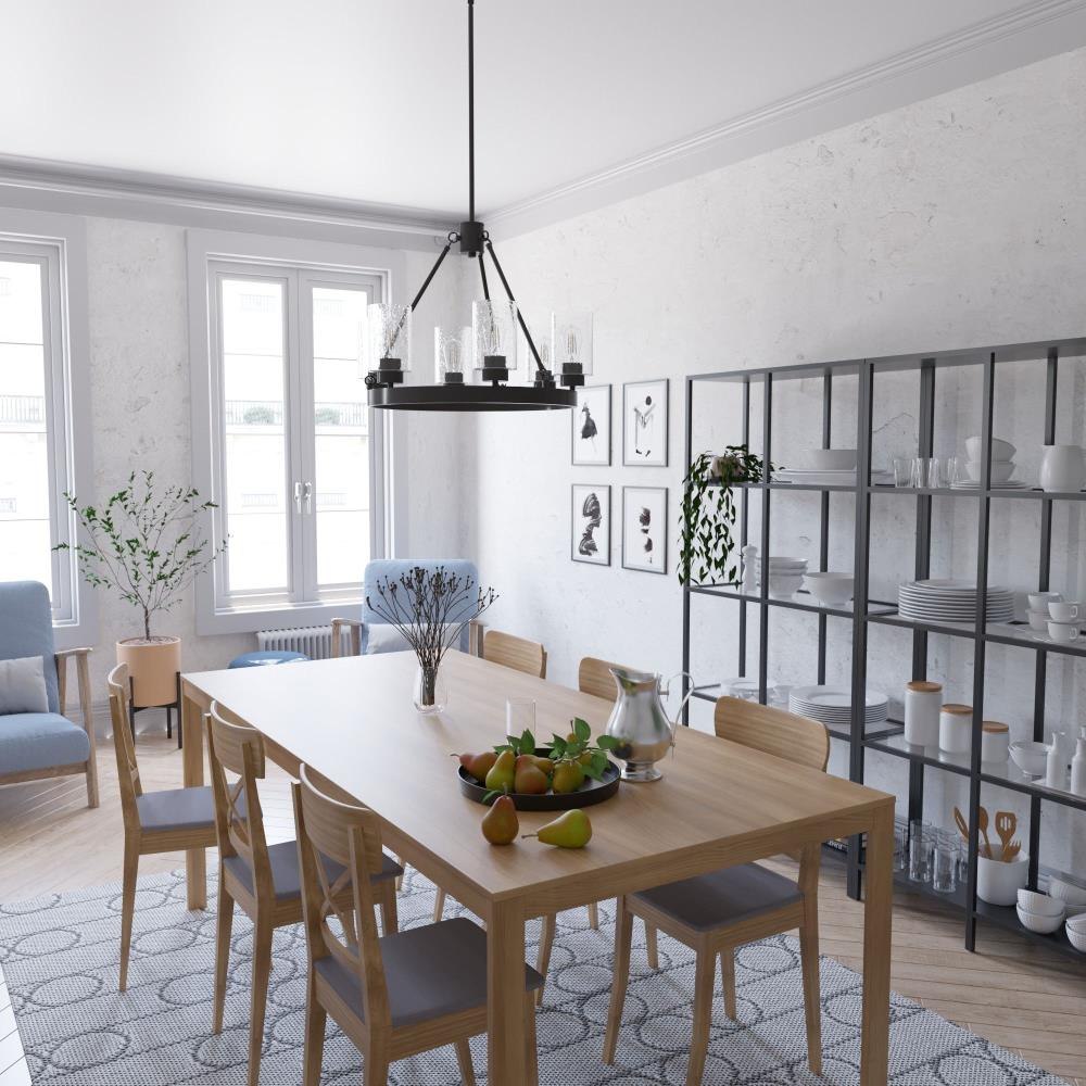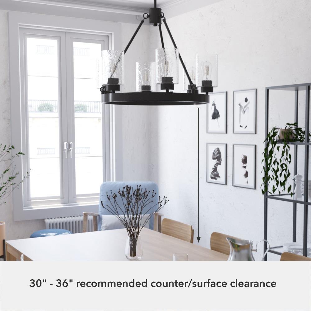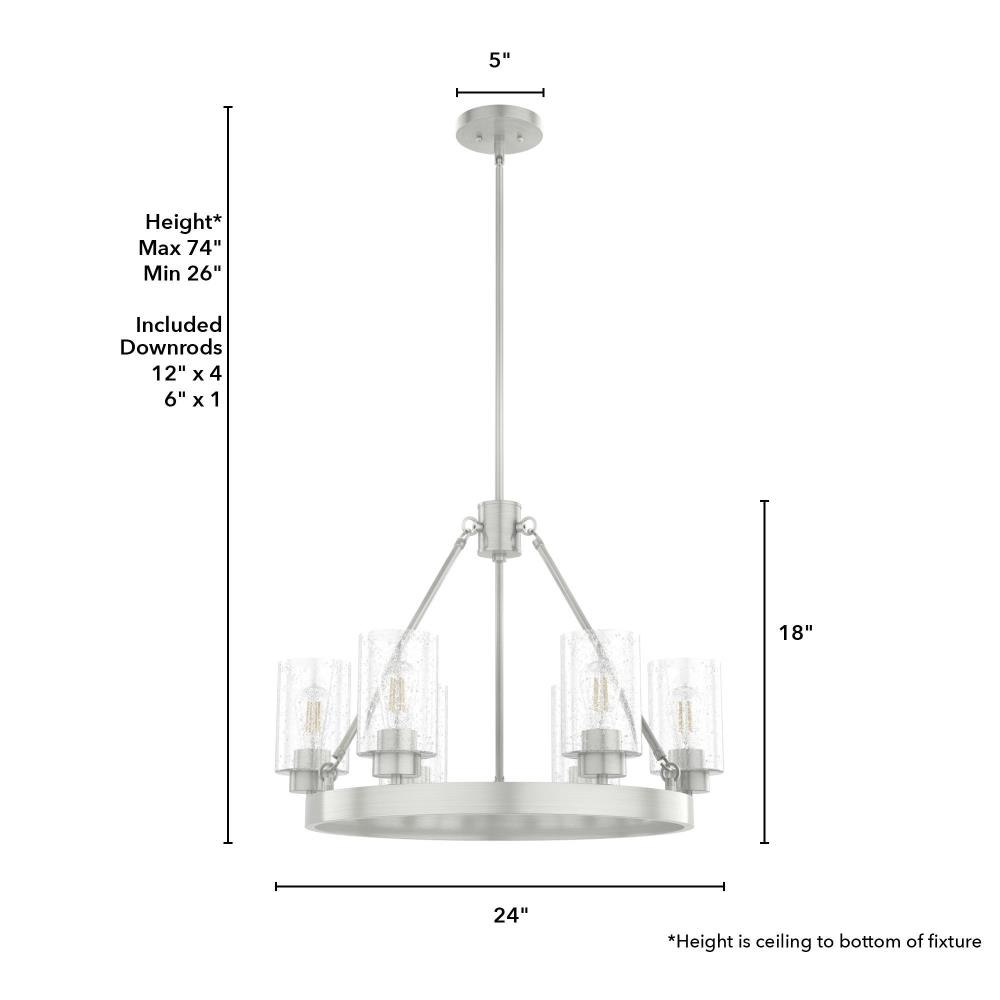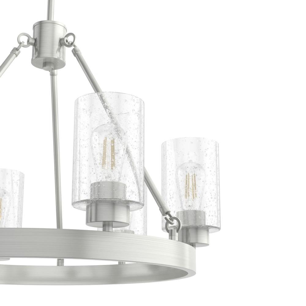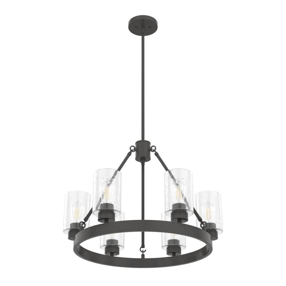 Illuminate your space in stunning fashion with the Hartland. Light reflects from this round chandeliers seeded glass shades in a striking way, whether from the bulb or sunlight. The Hartland 6-light chandelier delivers a revised classic look that complements a variety of styles and spaces.