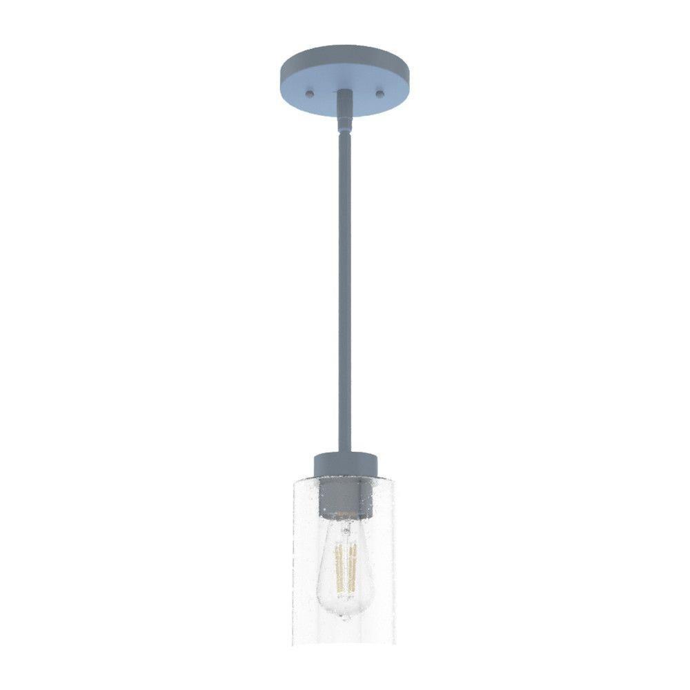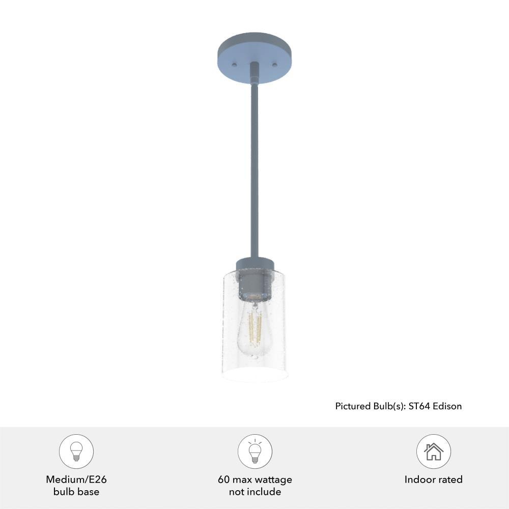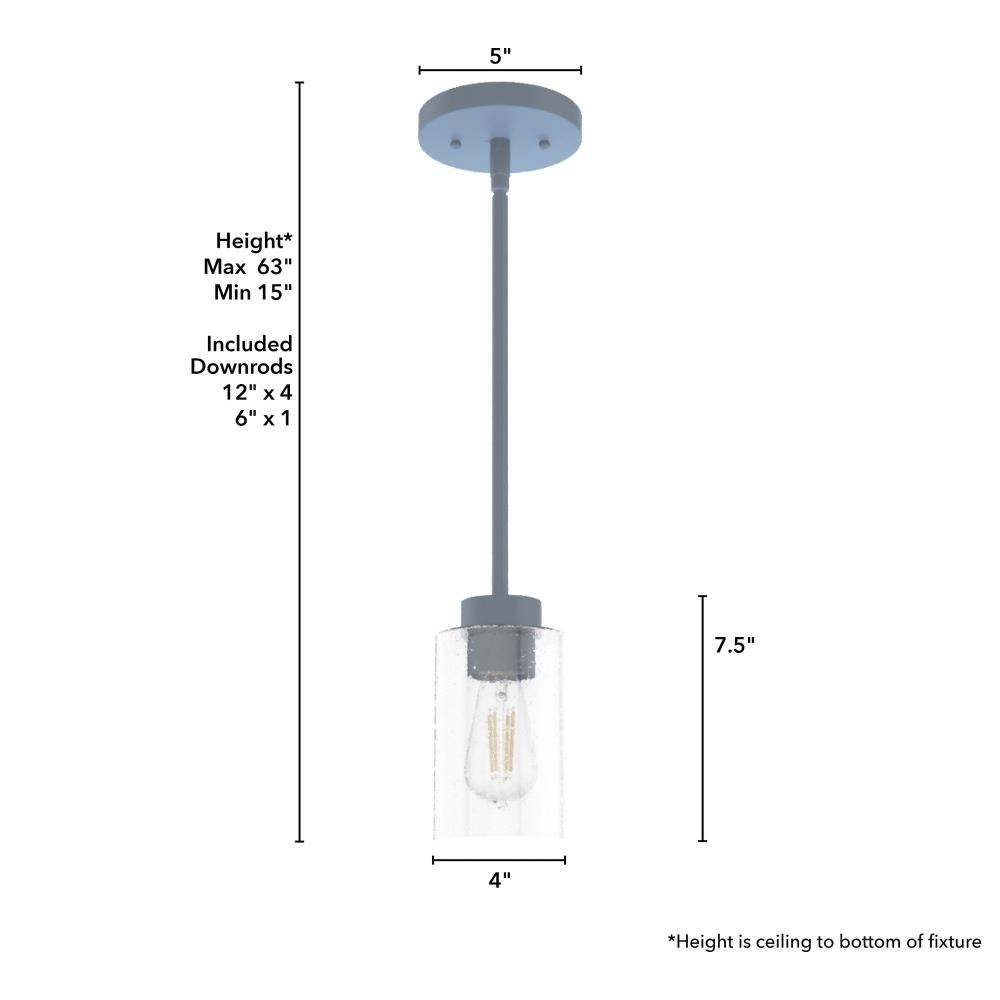 For such a small light fixture, the Hartland mini pendants seeded glass makes a shining impact. No matter the bulbs you choose, the clear seeded glass catches your eye as it sparkles from the rays of light. Combine the Hartland mini pendant light with other members of its collection for a well-rounded, stunning look.Coordinates with our Hartland ceiling fan collectionMounting system compatible with sloped or angled ceilingsIncludes one 6 inch downrod and four 12 inch downrodsRequires 1 bulb; bulb not includedLight fixture diameter 4 inches. Overall Maximum Height: 63 inches. Overall Minimum Height: 15 inches.Maximum wattage 60 per light bulb or equivalent LED bulbIndigo Blue finish with Seeded Glass.