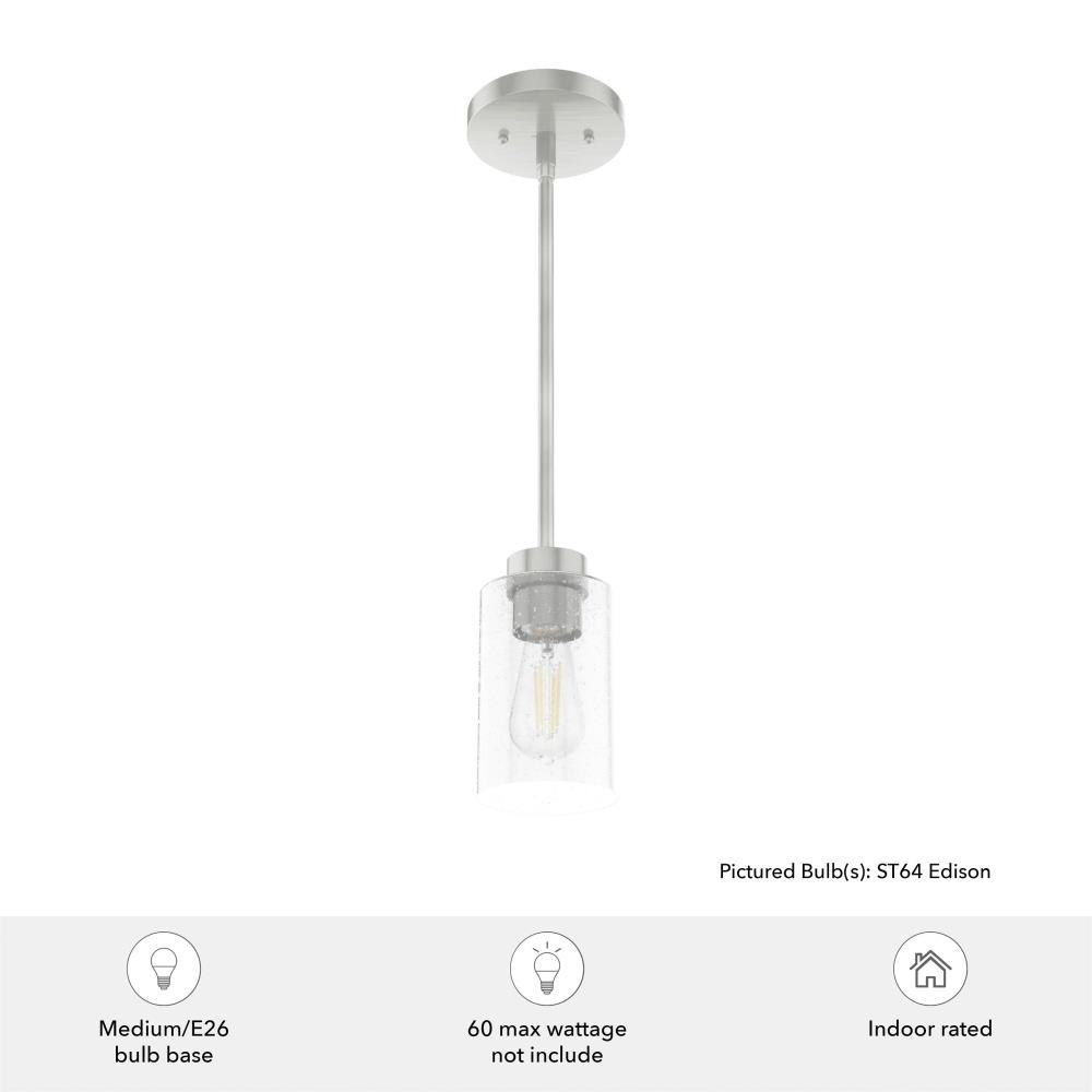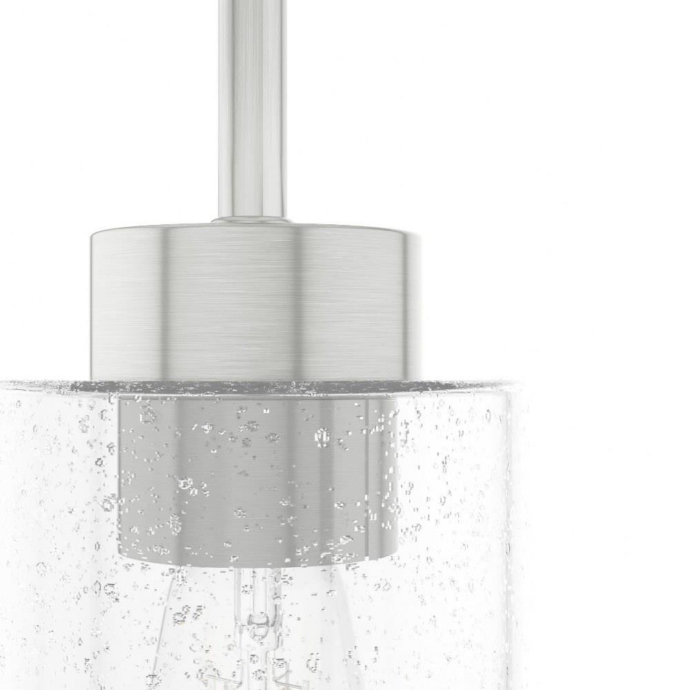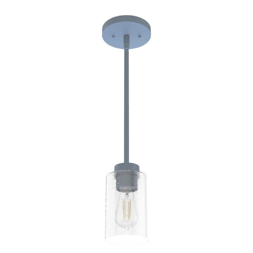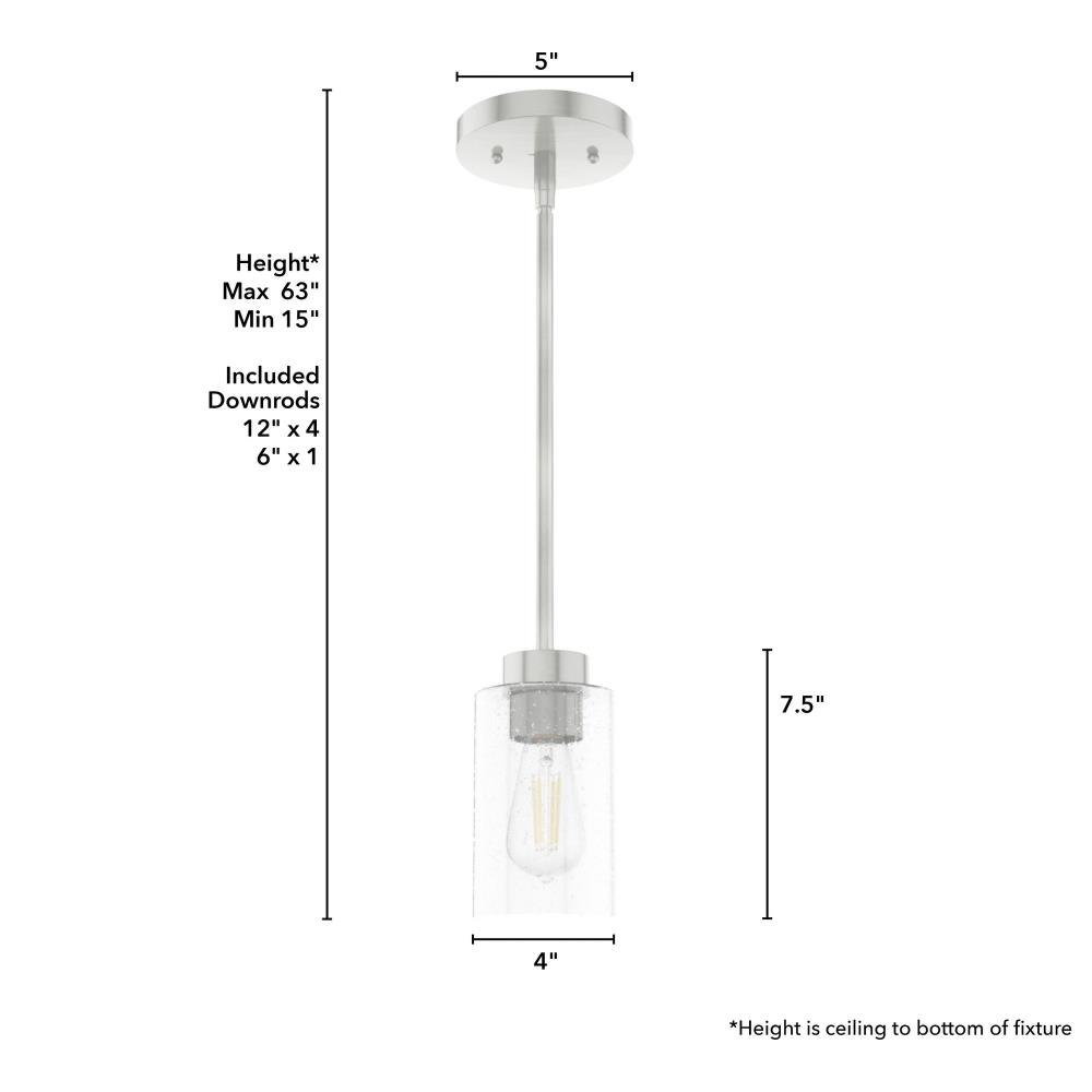 For such a small light fixture, the Hartland mini pendants seeded glass makes a shining impact. No matter the bulbs you choose, the clear seeded glass catches your eye as it sparkles from the rays of light. Combine the Hartland mini pendant light with other members of its collection for a well-rounded, stunning look.Coordinates with our Hartland ceiling fan collectionMounting system compatible with sloped or angled ceilingsIncludes one 6 inch downrod and four 12 inch downrodsRequires 1 bulb; bulb not includedLight fixture diameter 4 inches. Overall Maximum Height: 63 inches. Overall Minimum Height: 15 inches.Maximum wattage 60 per light bulb or equivalent LED bulbIndigo Blue finish with Seeded Glass.