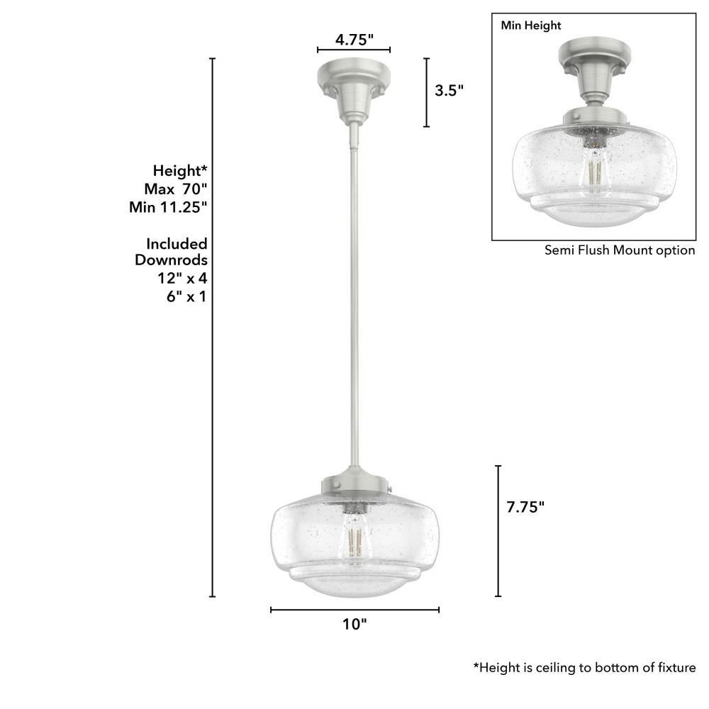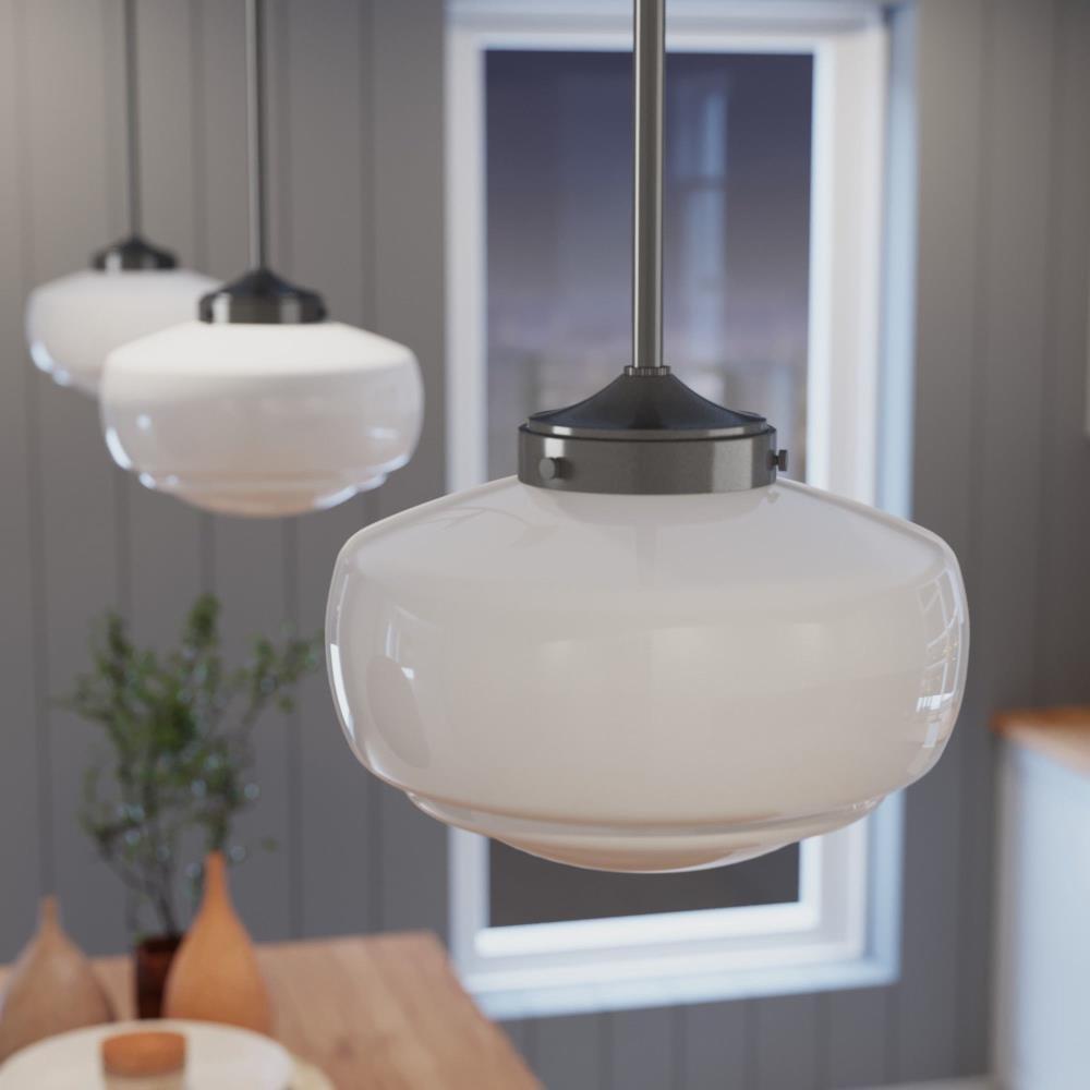 Traditional design. Elevated elements. The Saddle Creek mini pendant draws inspiration from the iconic American schoolhouse light but adds an updated touch with subtle detailing in the glass shade. For those who want all-in-one light fixtures, this schoolhouse-inspired mini pendant can also be installed as a semi-flush mount lighting.