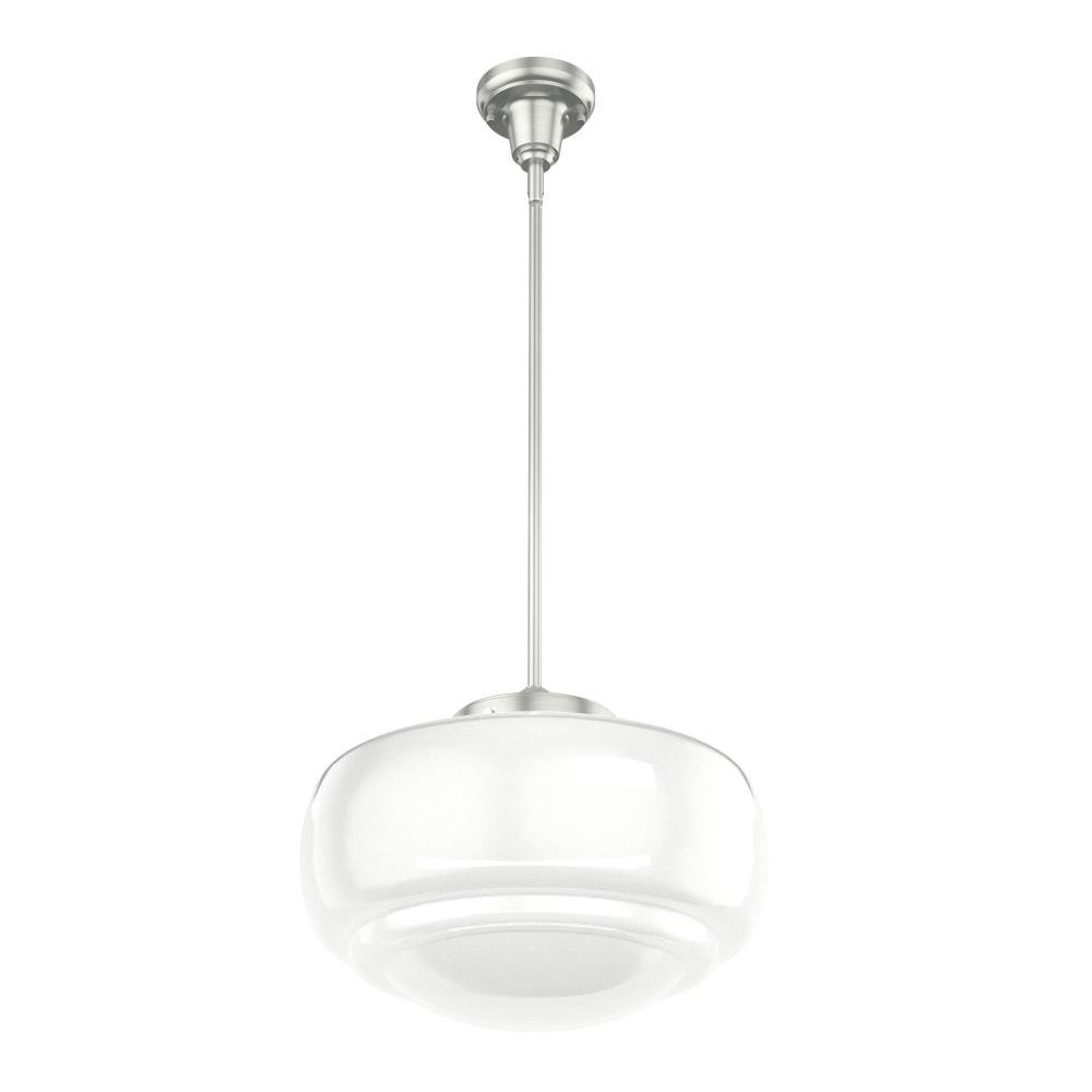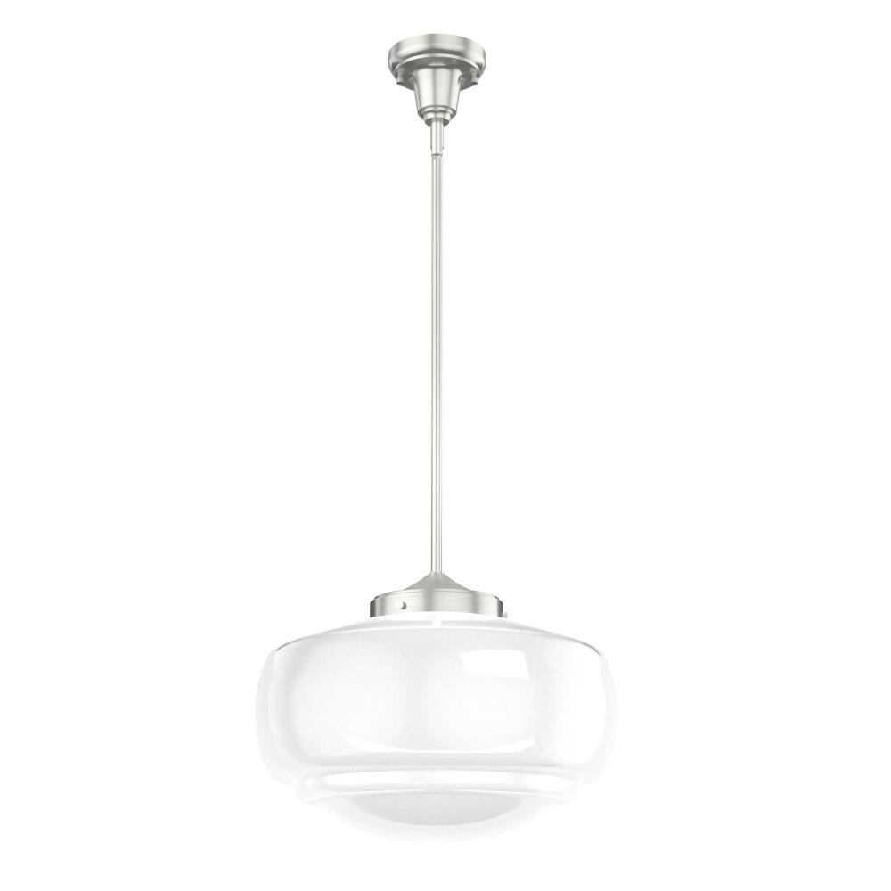 A classic lighting design reimagined. The Saddle Creek mini pendant draws inspiration from the iconic American schoolhouse light but elevates it with subtle detailing in the glass shade. For those who like flexibility with their lighting, this large 1-light pendant can also be installed as a semi-flush mount light fixture.