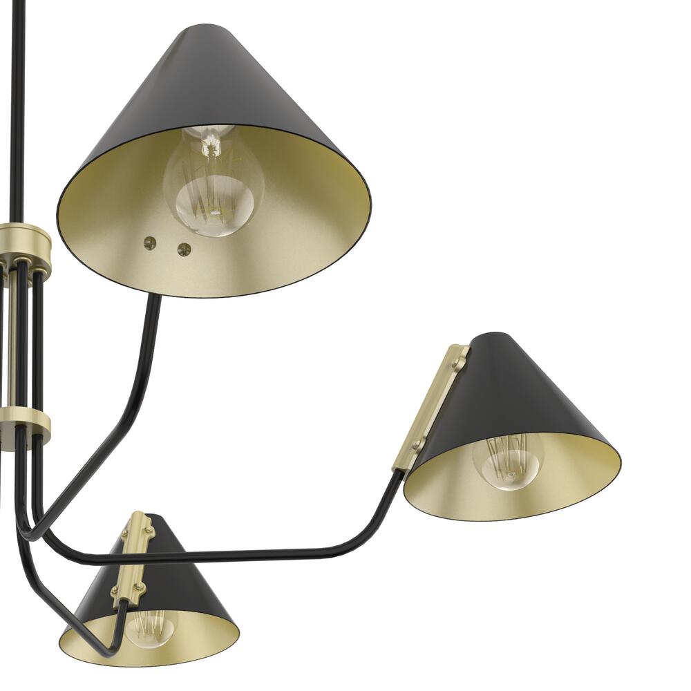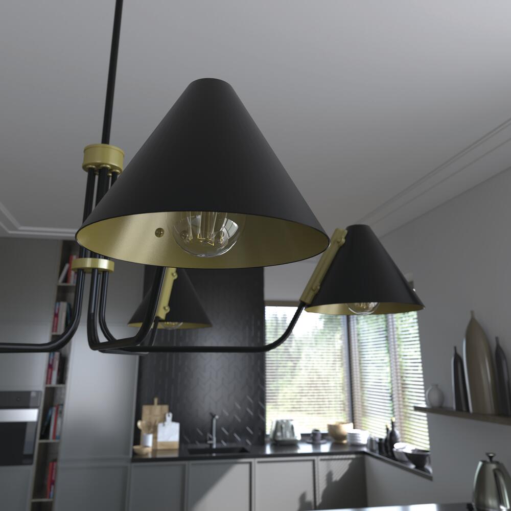 The Grove Isle transforms your simple spaces into shining showcases. The pop of metallic finish in the open light shades adds the perfect amount of luster that complements the classic finishes. This round chandelier is an updated take on the retro pharmacy head light fixture, utilizing clean lines and geometric forms for a look that's modern and playful.