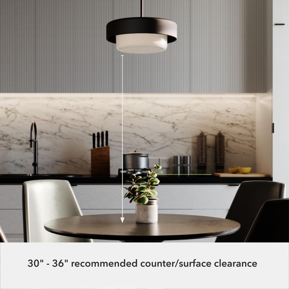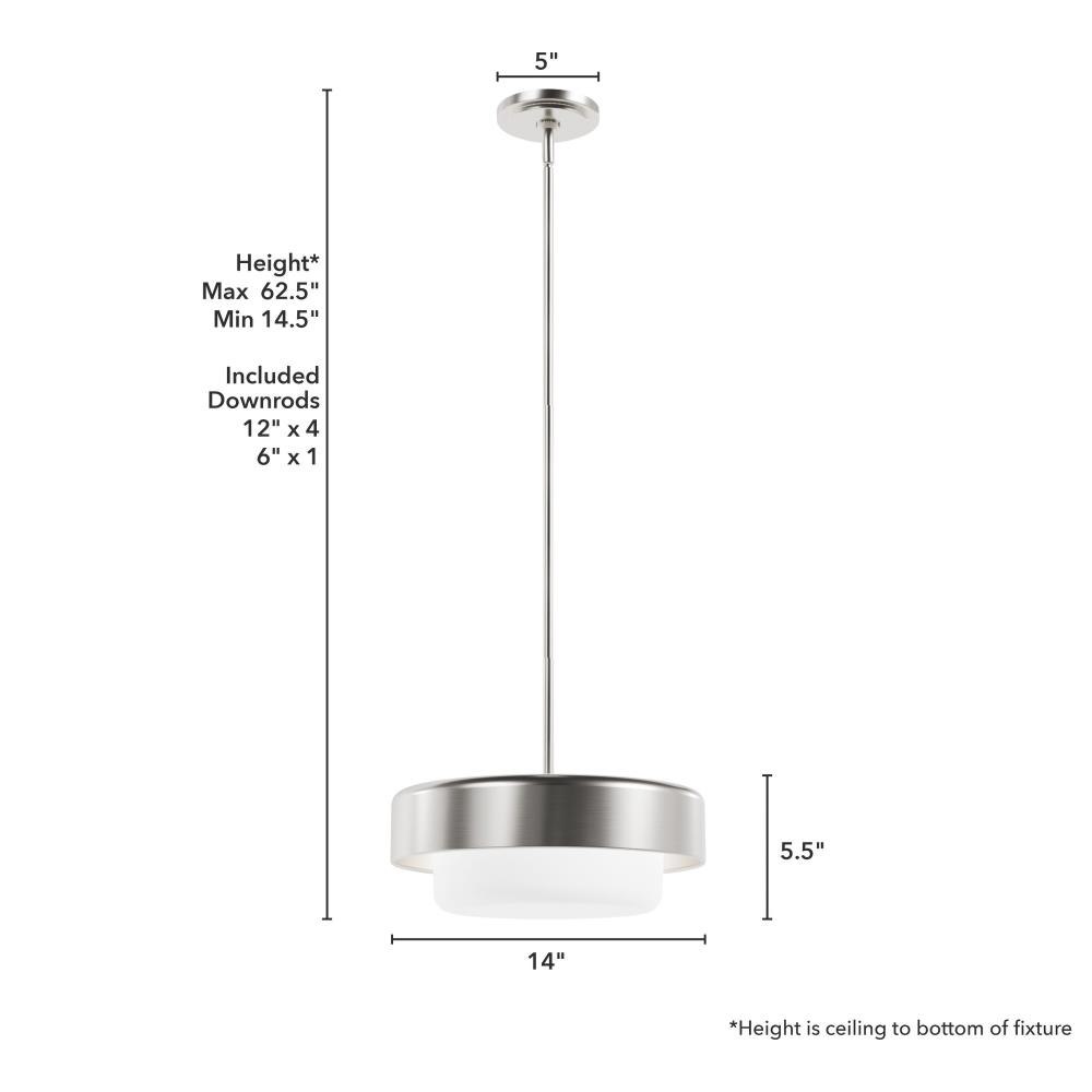The Station pendant could be the mid-century modern accent your kitchen or dining room is dying for. True to the style’s minimalist approach when accessorizing, the Station pendant is still a modern showstopper with its wide light shade, clean geometry and simple yet compelling design. Savor the return to retro with Hunter’s Station lighting collection. MADE FOR INDOORS: For use in indoor spaces like kitchens, bedrooms, living rooms, dining rooms, and entryways. BULB RECOMMENDATION: Maximum 60 W per light bulb or equivalent LED bulb. Bulbs not included. CUSTOMIZABLE HANGING OPTIONS: With the minimum required downrod, the hanging length is 14.5 inches. When using all of the included downrod, the maximum hanging length is 62.5 inches.