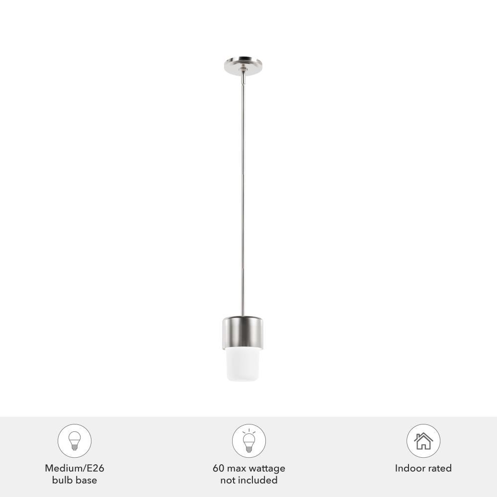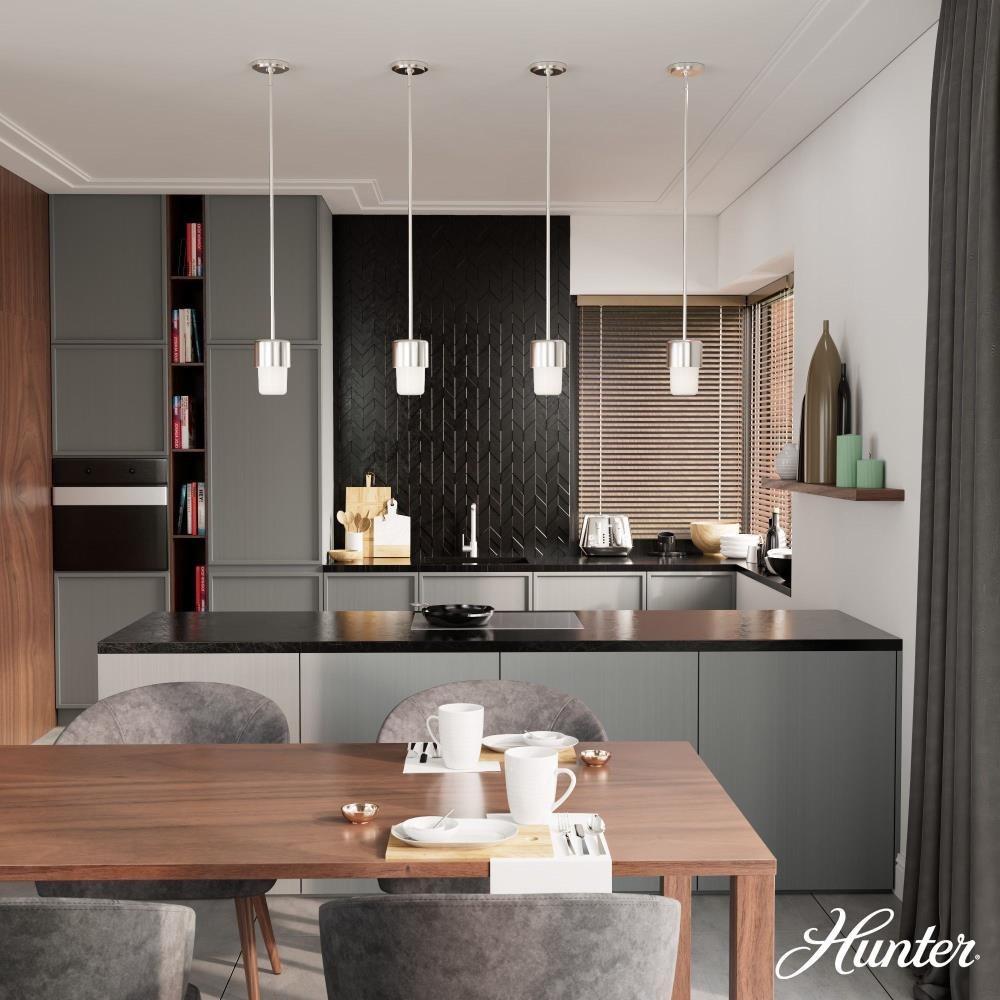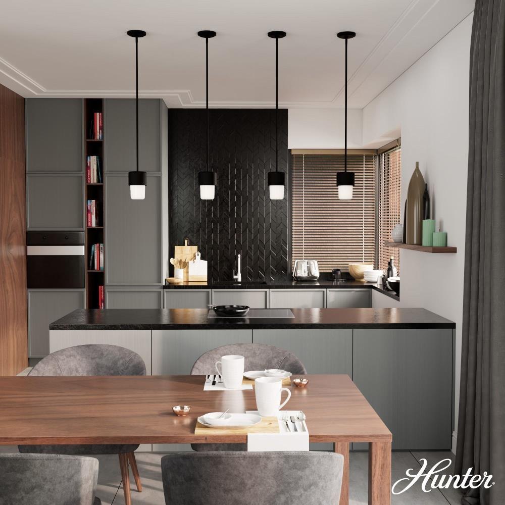 Hunter’s Station collection features a one-of-a-kind look that’s perfect for fans of mid-century modern. Proof that good things come in small packages, the Station 1 light mini pendant packs a big punch as it brightens up your breakfast nook, entryway or child’s study area. Light up all of your living spaces with the Bearden collection. MADE FOR INDOORS: For use in indoor spaces like kitchens, bedrooms, living rooms, dining rooms, and entryways. BULB RECOMMENDATION: Maximum 60 W per light bulb or equivalent LED bulb. Bulbs not included. CUSTOMIZABLE HANGING OPTIONS: With the minimum required downrod, the hanging length is 16.75 inches. When using all of the included downrod, the maximum hanging length is 64.75 inches.