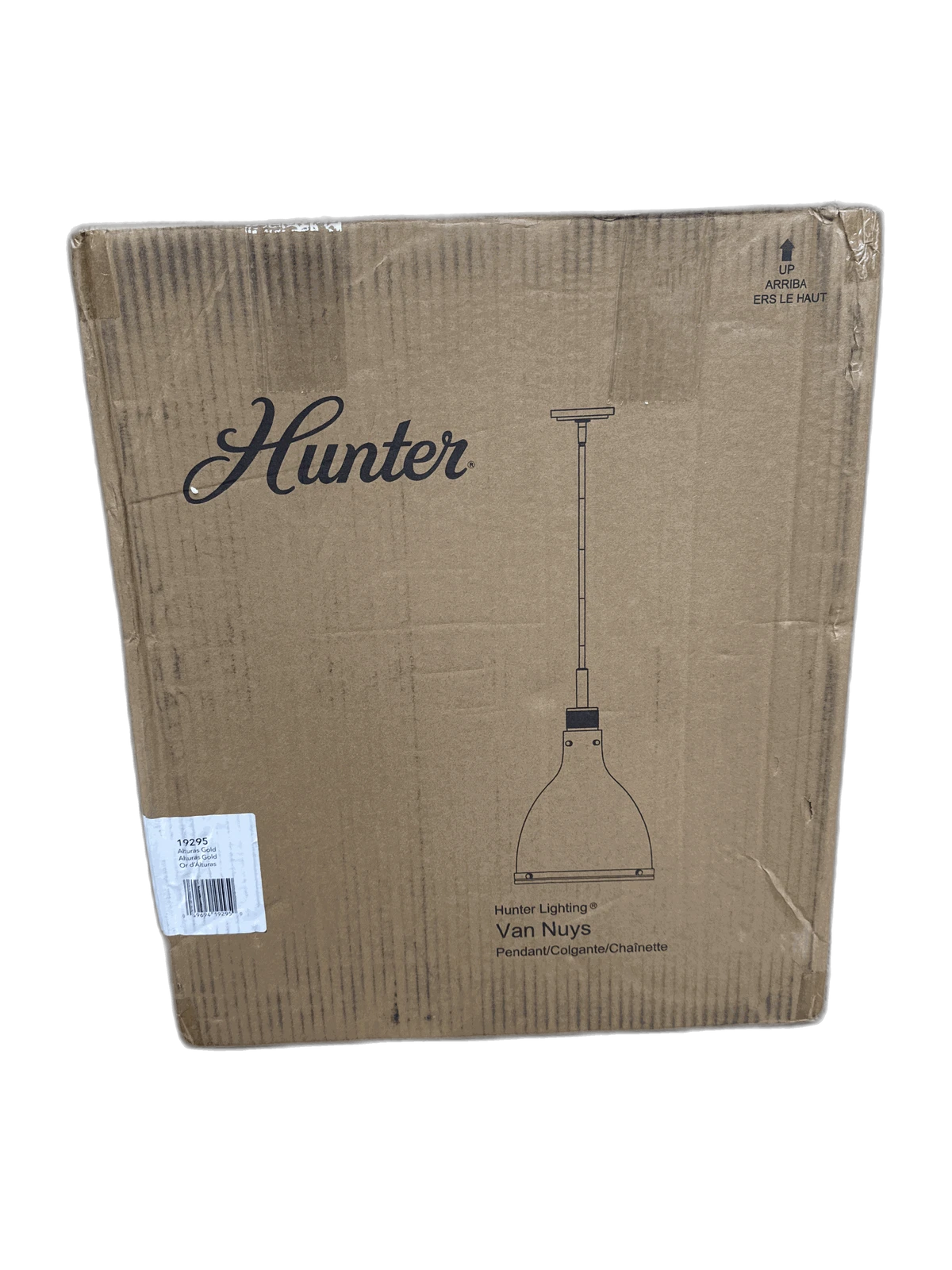 Hunter Van Nuys 1 Light Alturas Gold Pendant Light w/ Clear Glass Shade