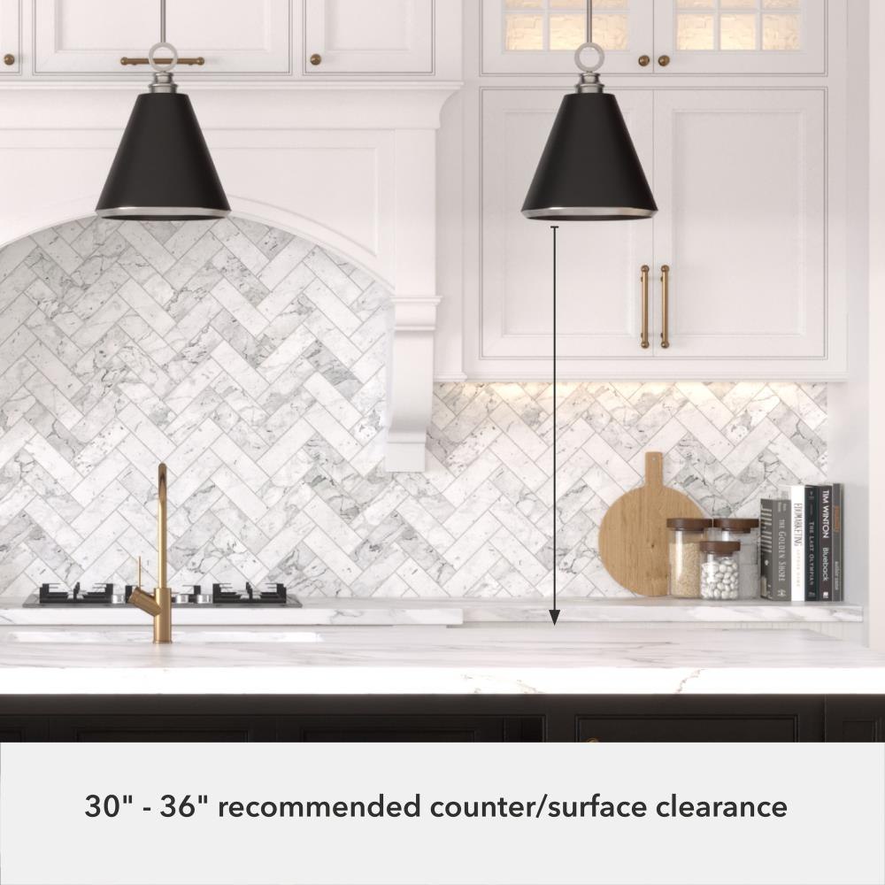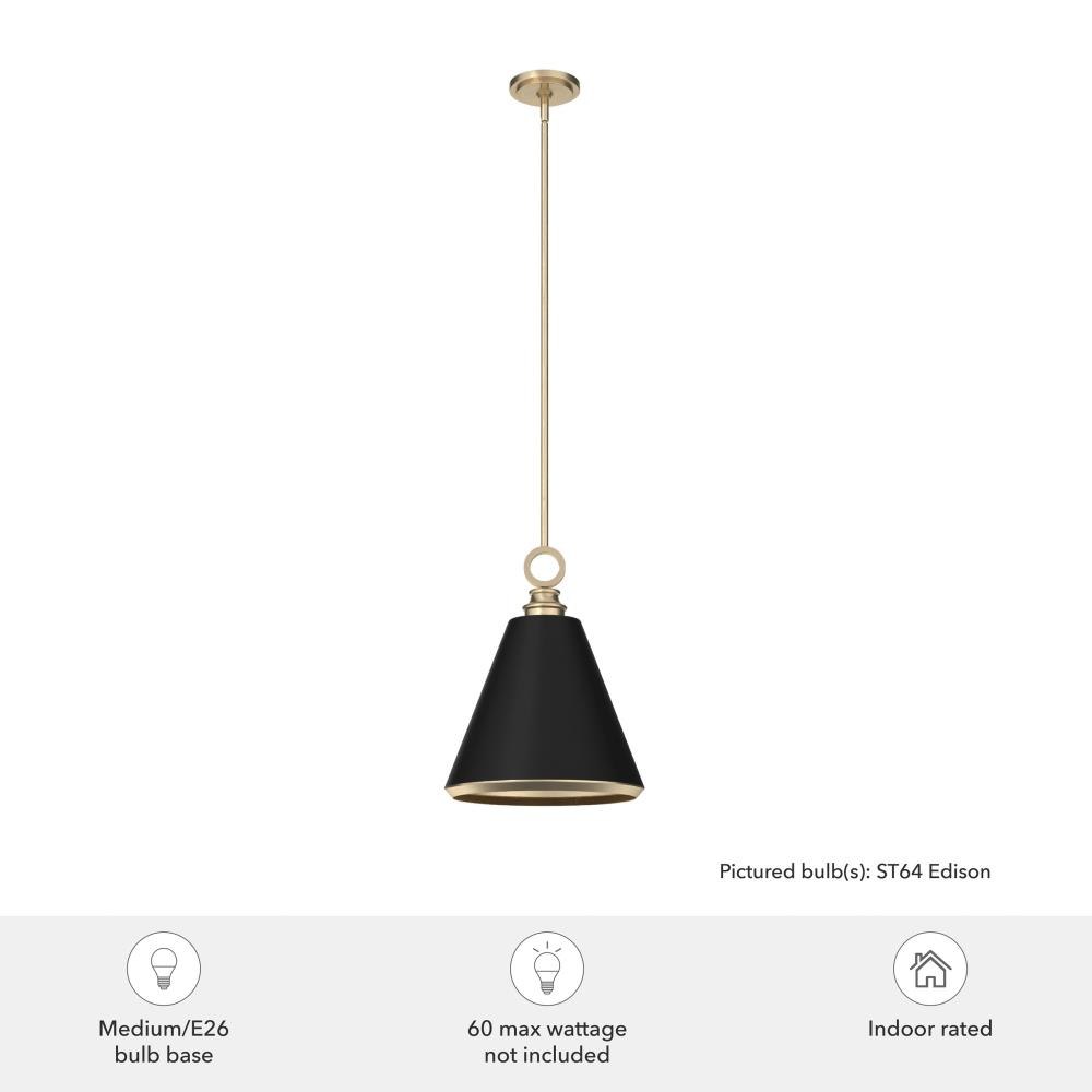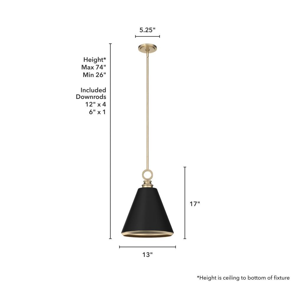 Suitable in any place where you entertain. The Klein 12 inch pendant makes a statement. The ring above the metal shade is the crowning piece of this sleek design. Make a modern statement with the Klein pendant light. Rated for indoor use only Requires 1 E27 bulbs. Bulbs not included. MADE FOR INDOORS: For use in indoor spaces like kitchens, bedrooms, living rooms, dining rooms, and entryways. BULB RECOMMENDATION: Maximum W per light bulb or equivalent LED bulb. Bulbs not included. PICTURED HERE: Match our image using ST64 Edison light bulbs. CUSTOMIZABLE HANGING OPTIONS: With the minimum required downrod, the hanging length is 26 inches. When using all of the included downrod, the maximum hanging length is 74 inches.