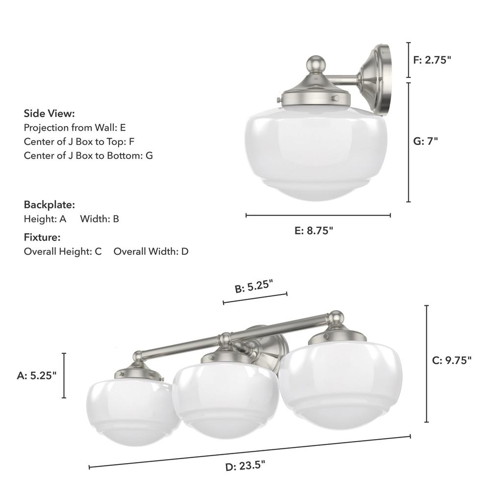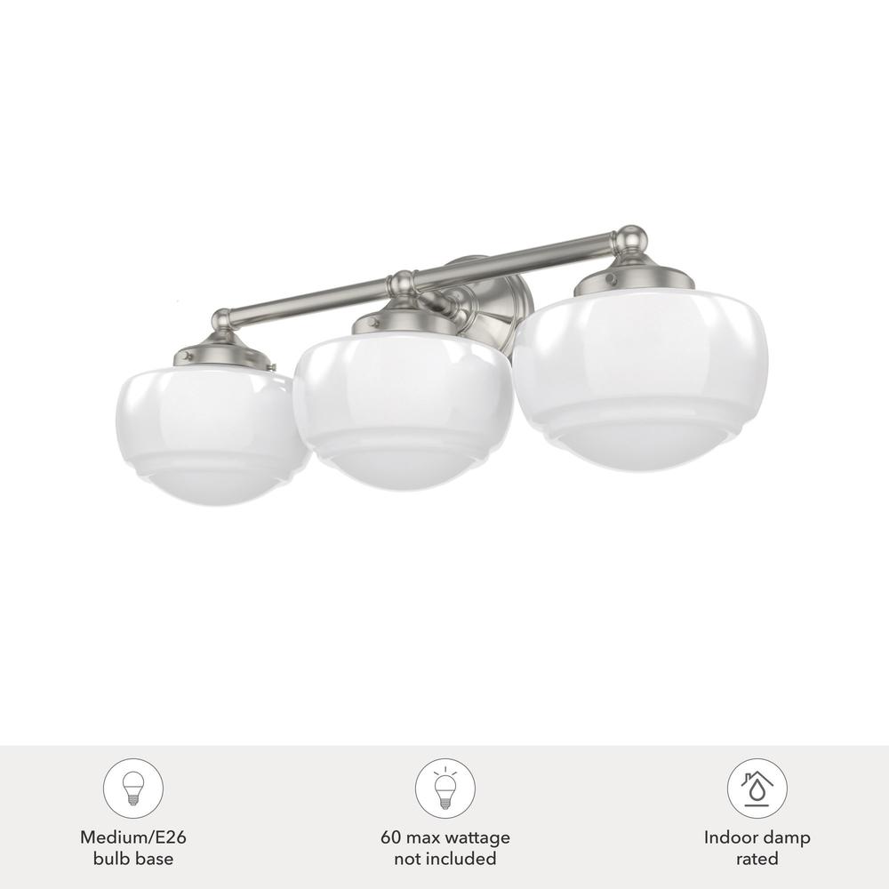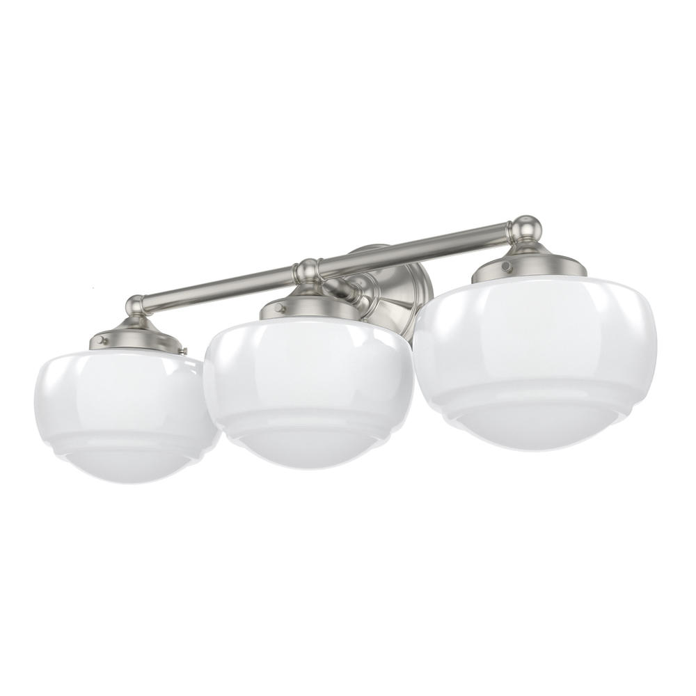 Introduce a vintage element to your vanity with the Saddle Creek 3 light fixture, inspired by the iconic American schoolhouse light. This vanity lighting will reflect a warm glow that illuminates subtle detailing within the glass. The Saddle Creek?s simple metal finish and fittings lend a subtlety to the light?s sophisticated style.