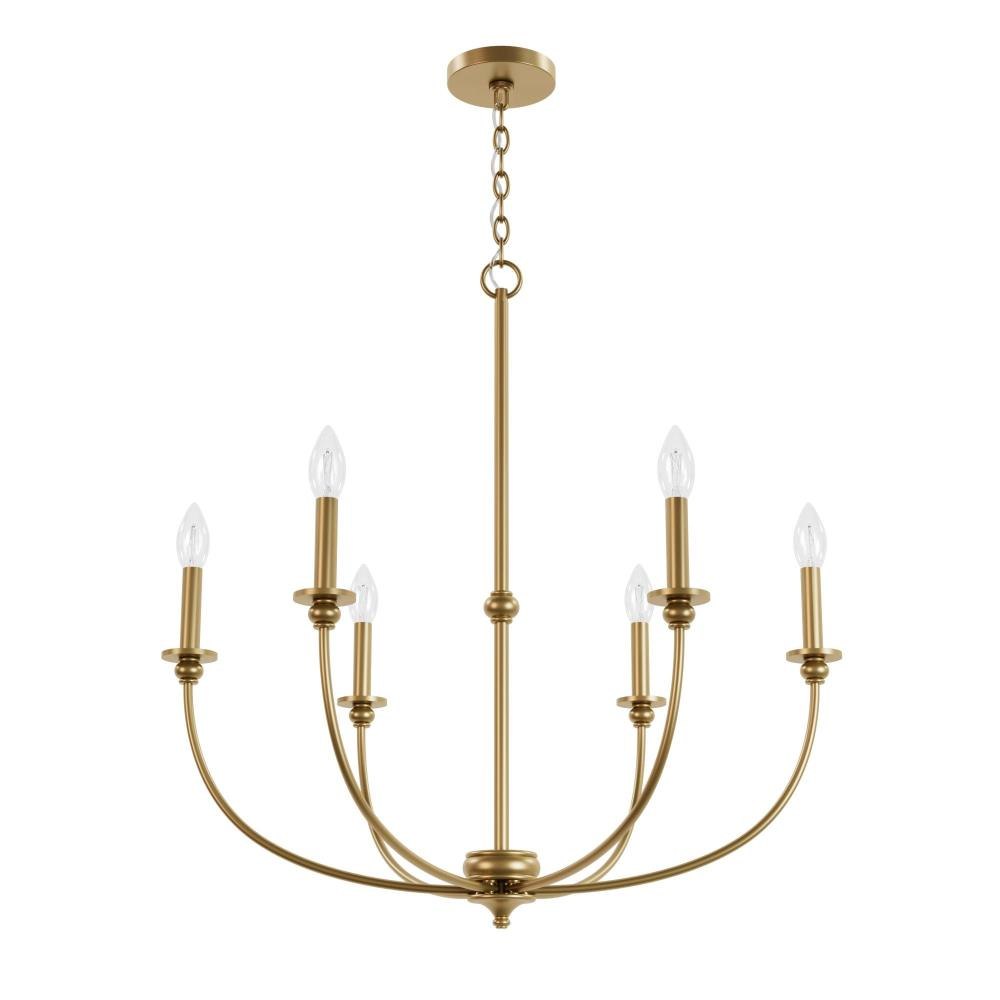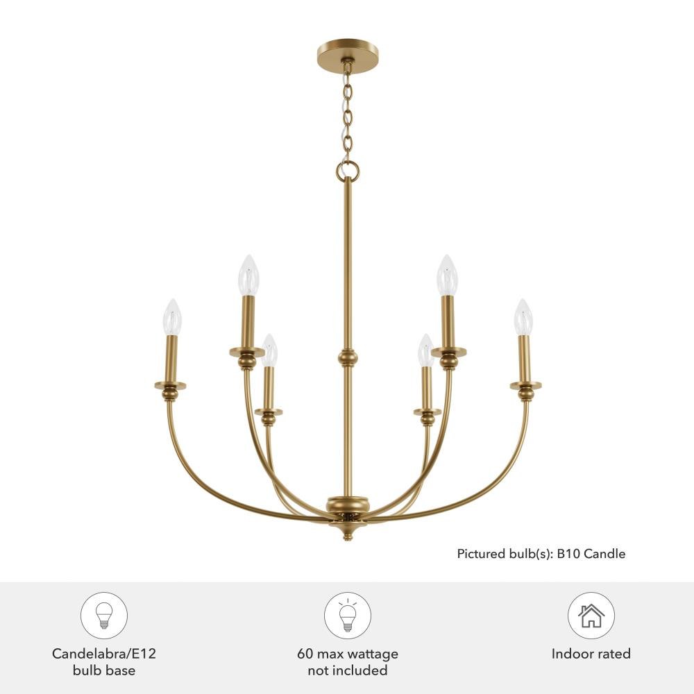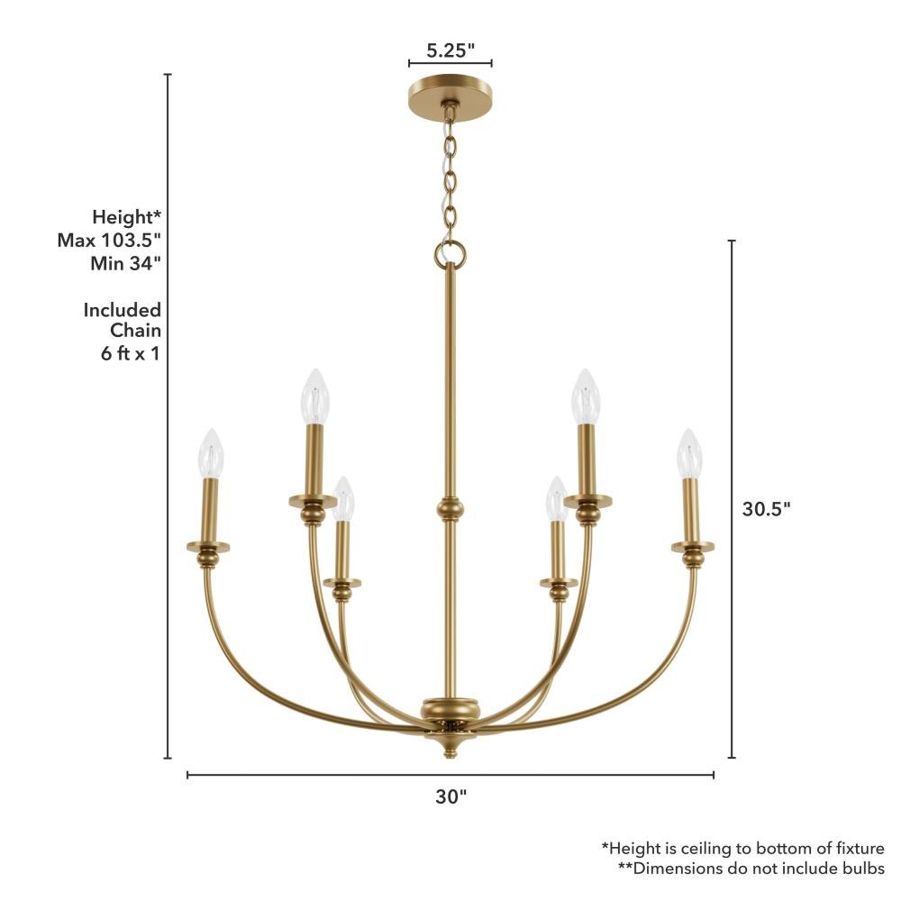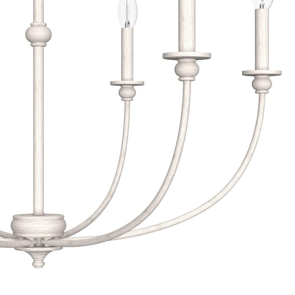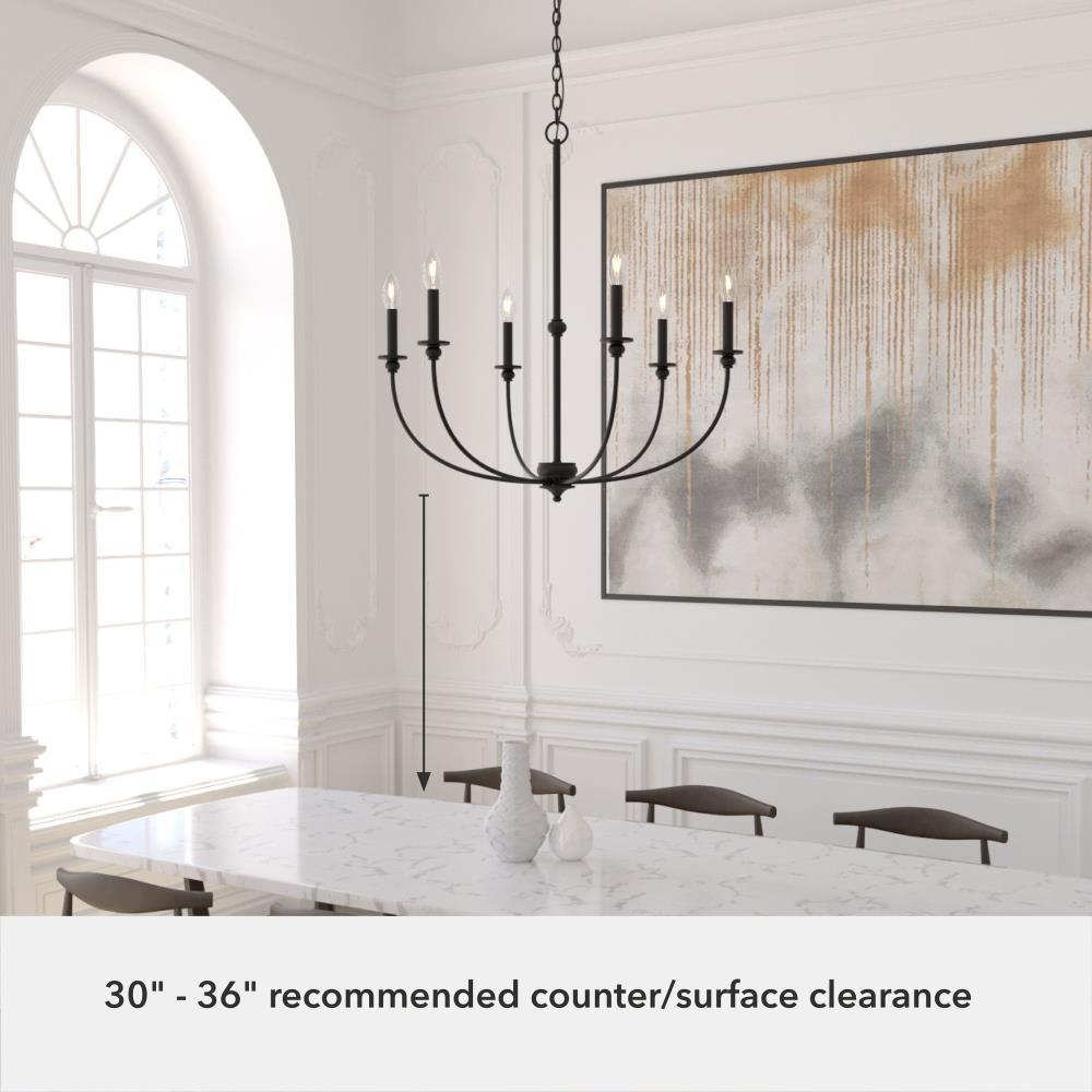 The Southcrest 6 light chandelier is an elegant accent piece that can brighten up any living or dining space. Classic design and cottage style converge in this candelabra-like chandelier with subtle curves and a vintage vibe. Available in flat matte black or distressed white, you can choose the fixture finish that perfectly complements your existing décor. Rated for indoor use only Requires 6 E12 bulbs. Bulbs not included. MADE FOR INDOORS: For use in indoor spaces like kitchens, bedrooms, living rooms, dining rooms, and entryways. BULB RECOMMENDATION: Maximum 60 W per light bulb or equivalent LED bulb. Bulbs not included. CUSTOMIZABLE HANGING OPTIONS: With the minimum required chain, the hanging length is 34 inches. When using all of the included chain, the maximum hanging length is 103.5 inches.